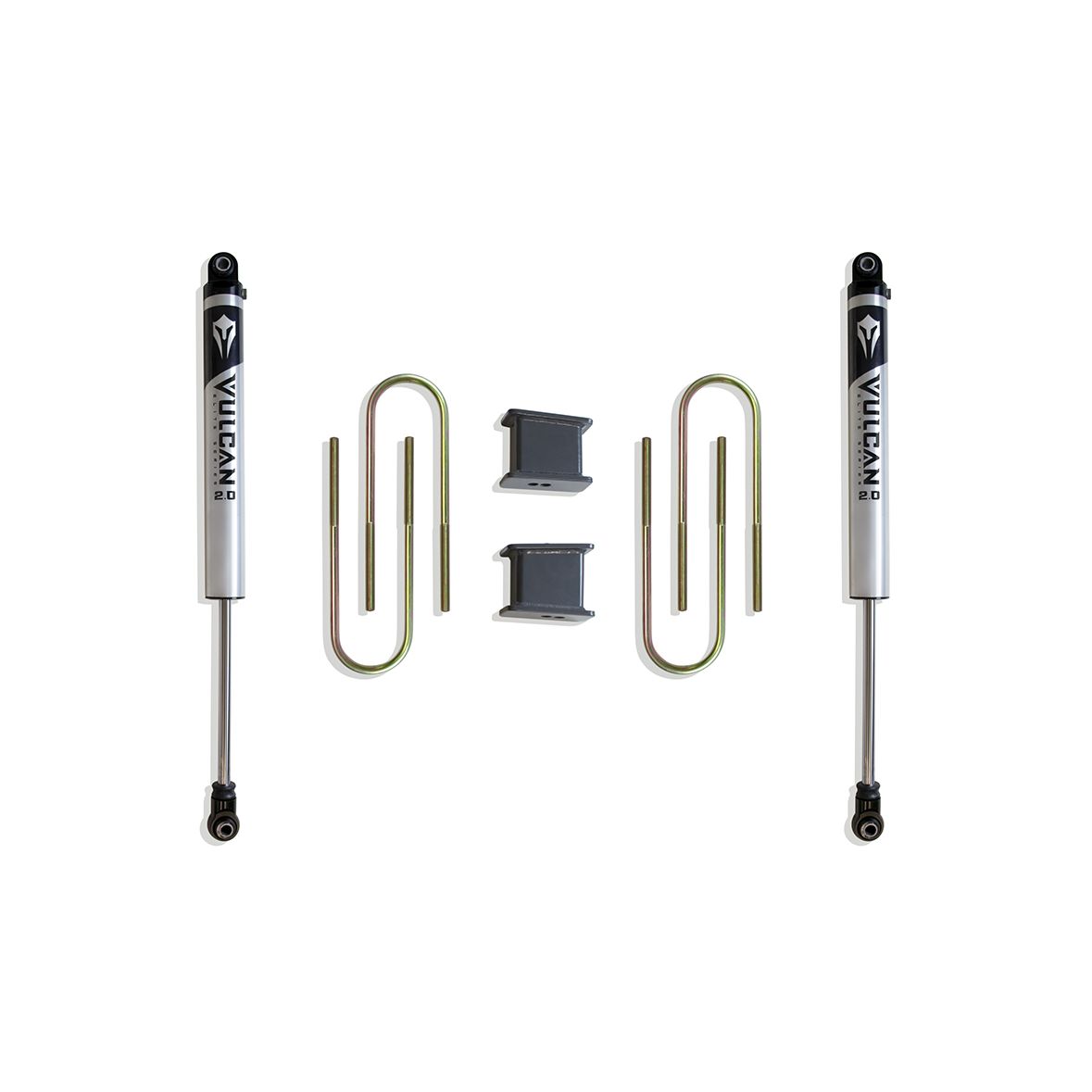 MAX TRAC SUSPENSION'S PART# 902140V IS A REAR BOX KIT INCLUDING 4" LIFT BLOCKS, U-BOLTS & A PAIR OF VULCAN SERIES SHOCKS
