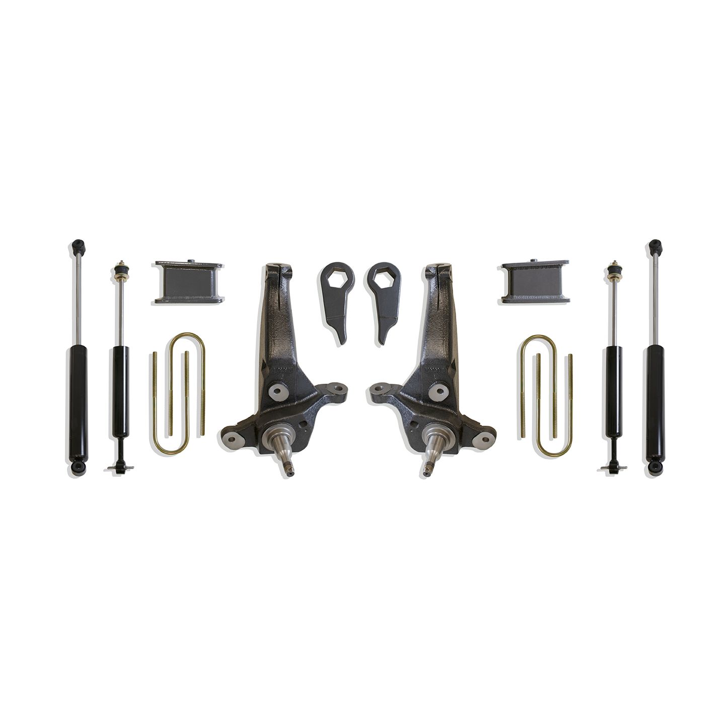 MAX TRAC SUSPENSION'S KIT# K883053C IS A 5"-6" LIFT KIT INCLUDING SPINDLES, TORSION KEYS, BLOCKS, U-BOLTS & FRONT/REAR MAX TRAC SHOCKS – REQUIRES LONGER AFTERMARKET UPPER CONTROL ARMS TO ALIGN PROPERLY