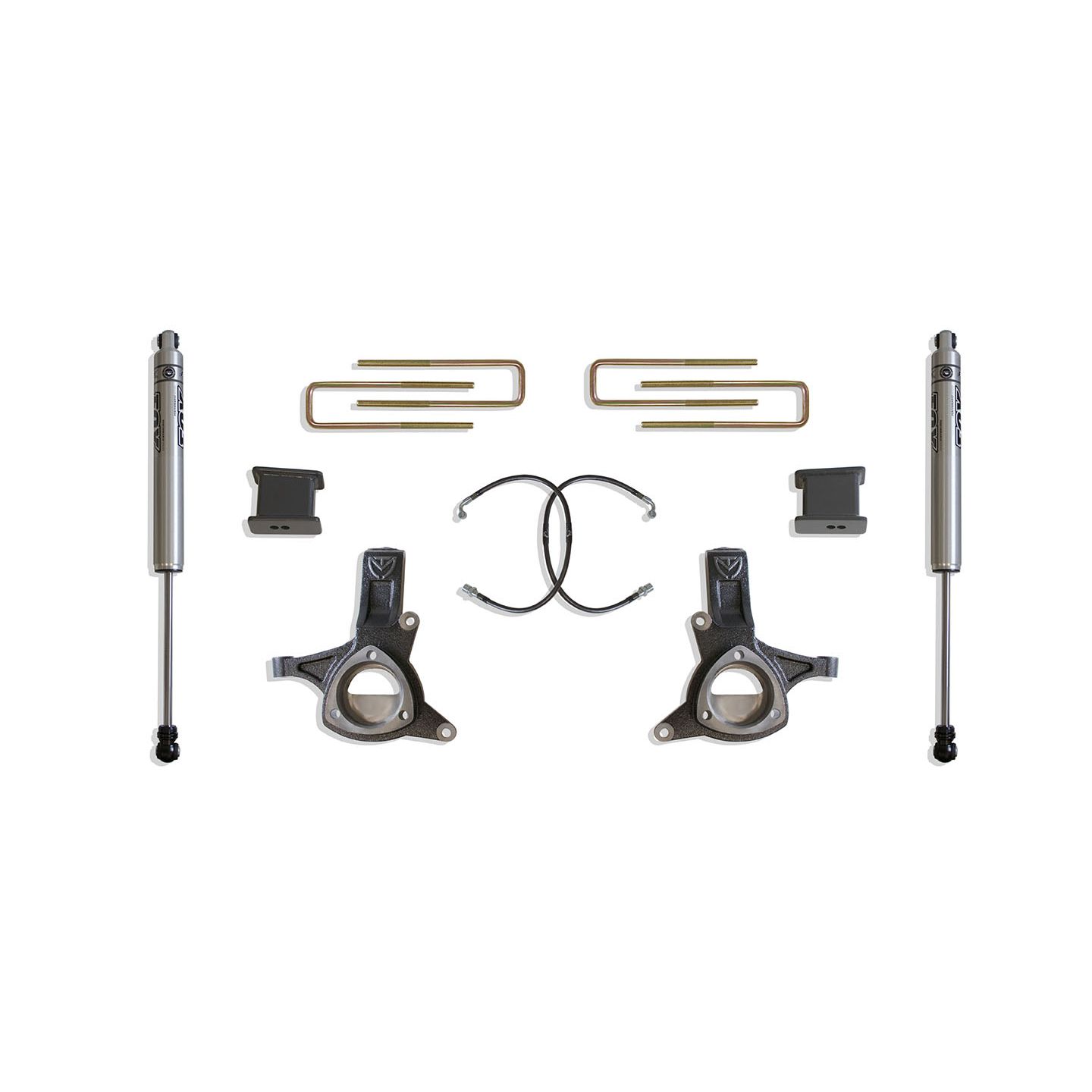 MAX TRAC SUSPENSION'S KIT# K881753F IS A COMPLETE 5" LIFT KIT INCLUDING SPINDLES, EXTENDED BRAKE LINES, BLOCKS, U-BOLTS & FOX 2.0 PERFORMANCE SERIES REAR SHOCKS