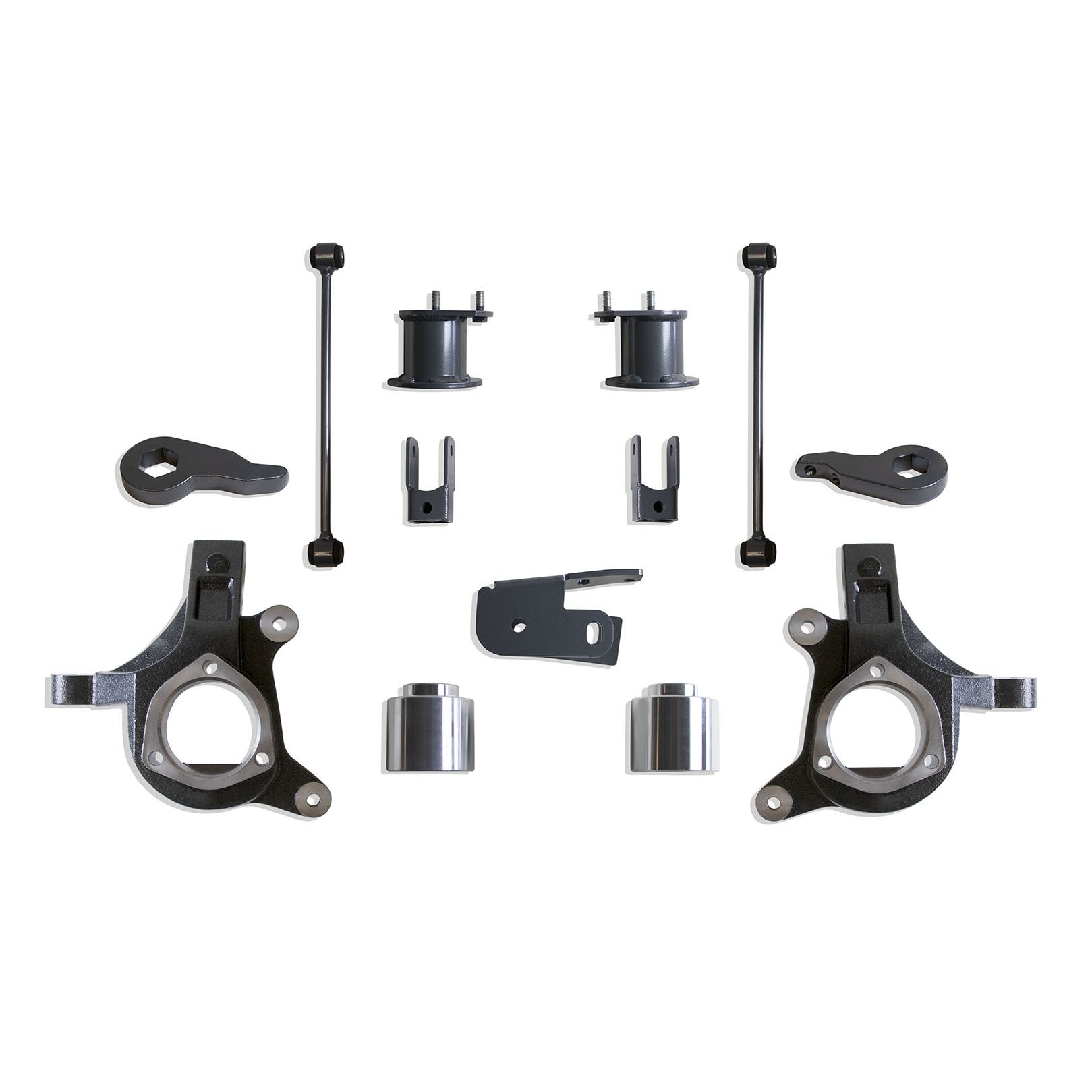MAX TRAC SUSPENSION'S KIT# K881053 IS A COMPLETE 5" LIFT KIT INCLUDING LIFT SPINDLES, TORSION KEYS W/ FRONT SHOCK EXTENDERS, REAR COIL SPACERS, TRAC BAR BRACKET & MAX TRAC REAR SHOCK EXTENDERS