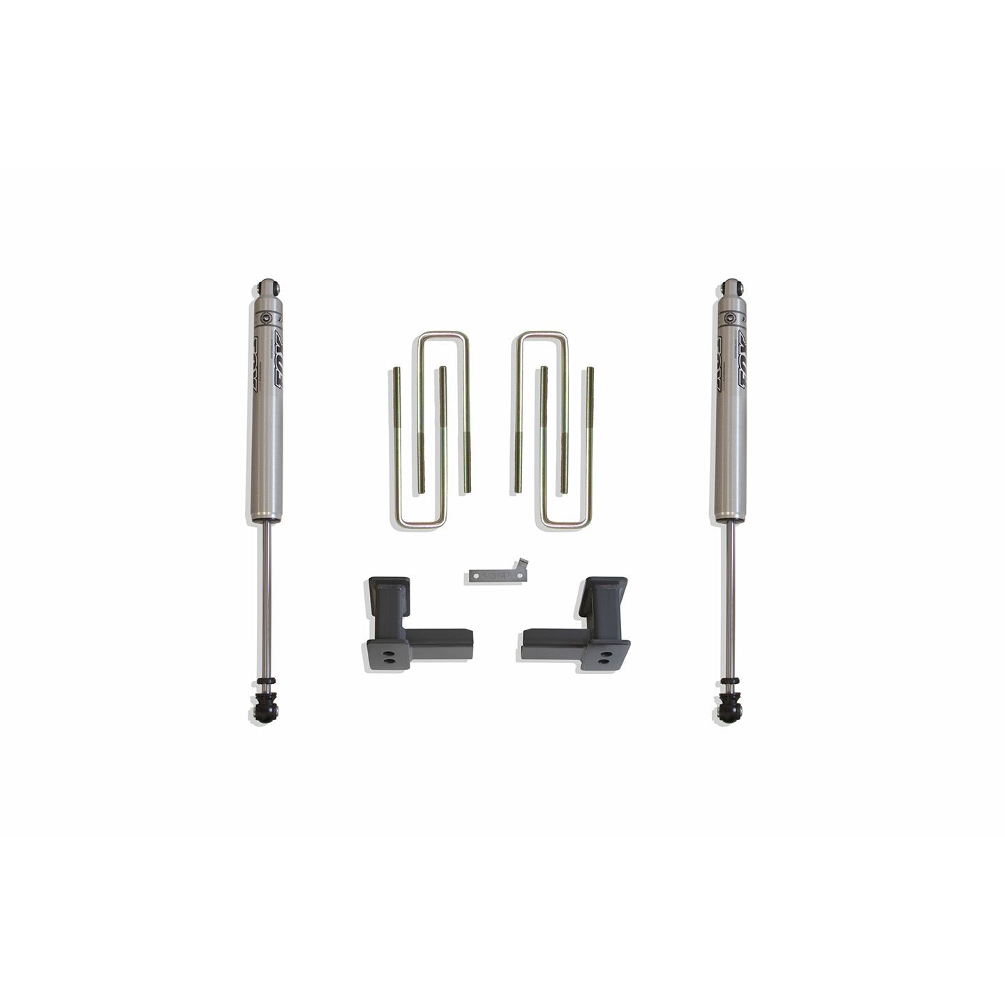 MAX TRAC SUSPENSION'S PART# 903250F IS A REAR BOX KIT INCLUDING 5" LIFT BLOCKS, U-BOLTS & A PAIR OF FOX 2.0 PERFORMANCE SERIES REAR SHOCKS