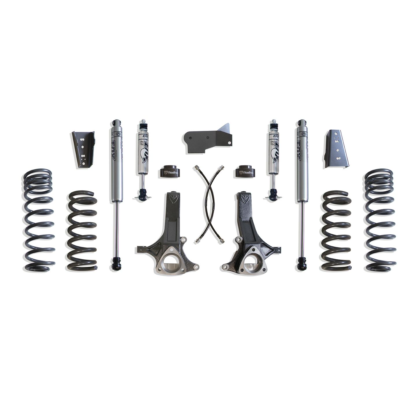 MAX TRAC SUSPENSION'S KIT# K882464F IS A COMPLETE 6.5" LIFT KIT INCLUDING ECODIESEL COILS, SPINDLES, EXTENDED BRAKE LINES, REAR COILS, SPACERS, TRAC BAR BRACKET, SWAY BAR BRACKETS & FRONT/REAR FOX 2.0 PERFORMANCE SERIES SHOCKS