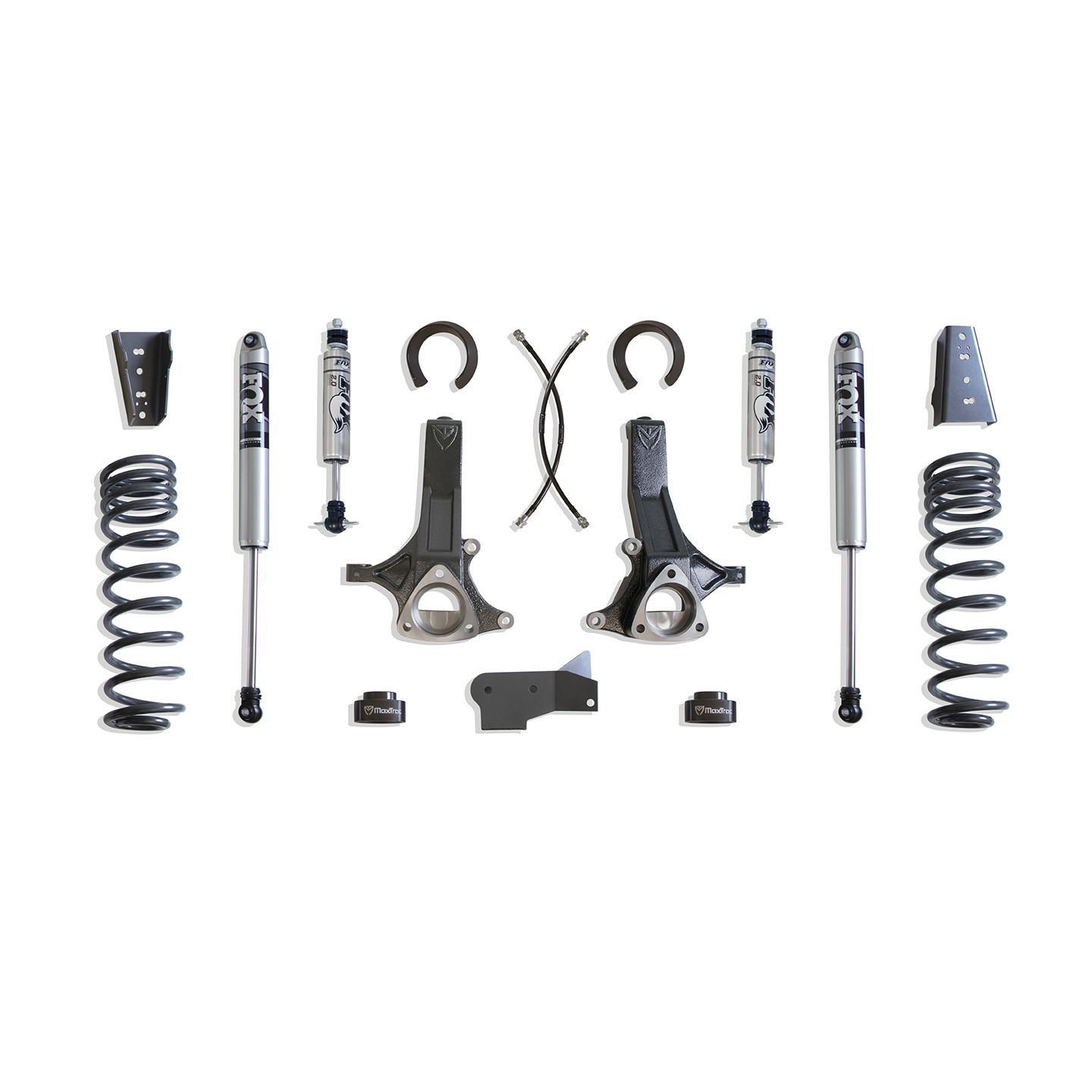 MAX TRAC SUSPENSION'S KIT# K882465F IS A COMPLETE 6.5" LIFT KIT INCLUDING FRONT SPACERS, SPINDLES, EXTENDED BRAKE LINES, REAR COILS, SPACERS, TRAC BAR BRACKET, SWAY BAR BRACKETS & FRONT/REAR FOX 2.0 PERFORMANCE SERIES SHOCKS