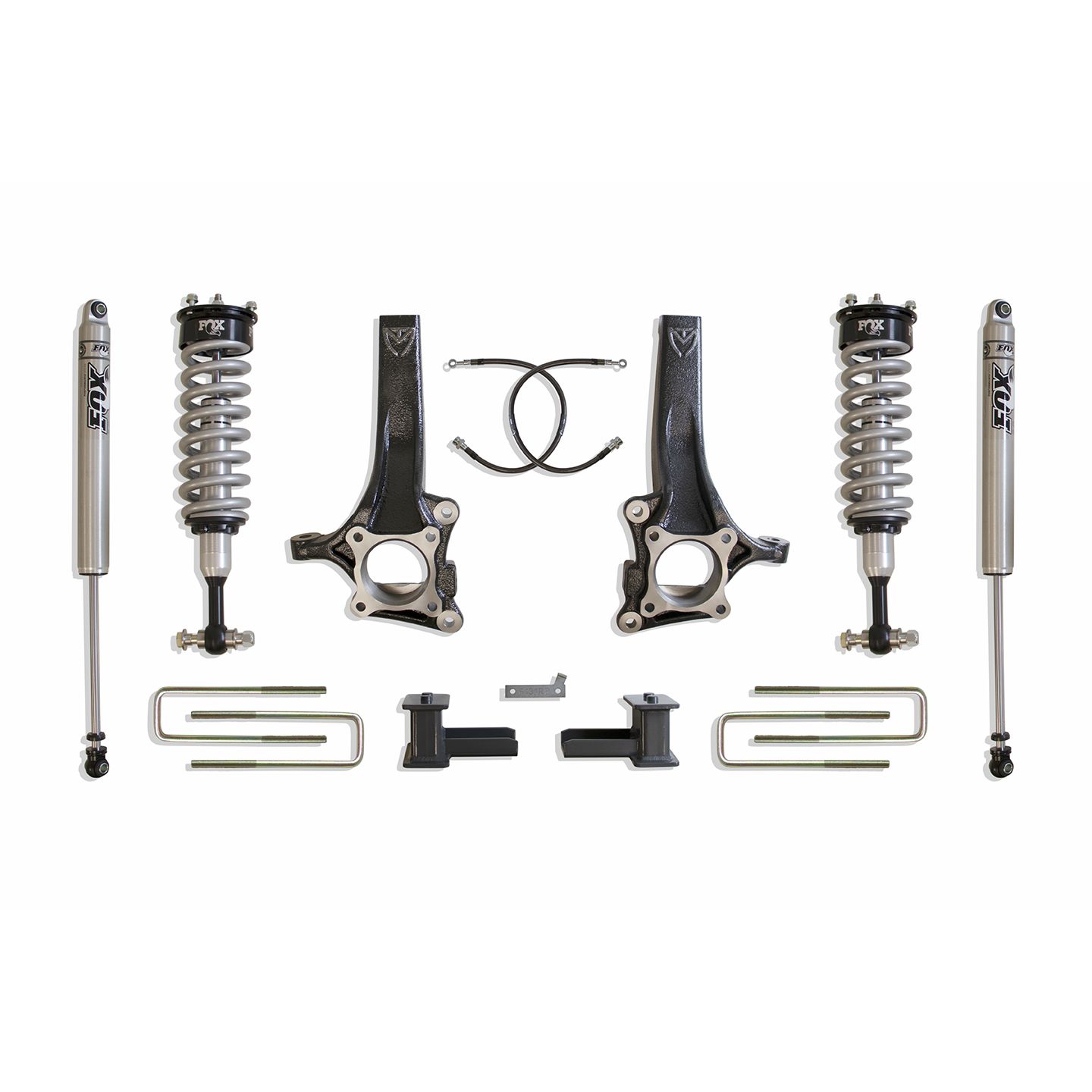 MAX TRAC SUSPENSION'S KIT# K883464F IS A COMPLETE 6.5" LIFT KIT INCLUDING FOX 2.0 PERFORMANCE SERIES COIL OVERS, SPINDLES, EXTENDED BRAKE LINES, BLOCKS, U-BOLTS & FOX 2.0 PERFORMANCE SERIES REAR SHOCKS