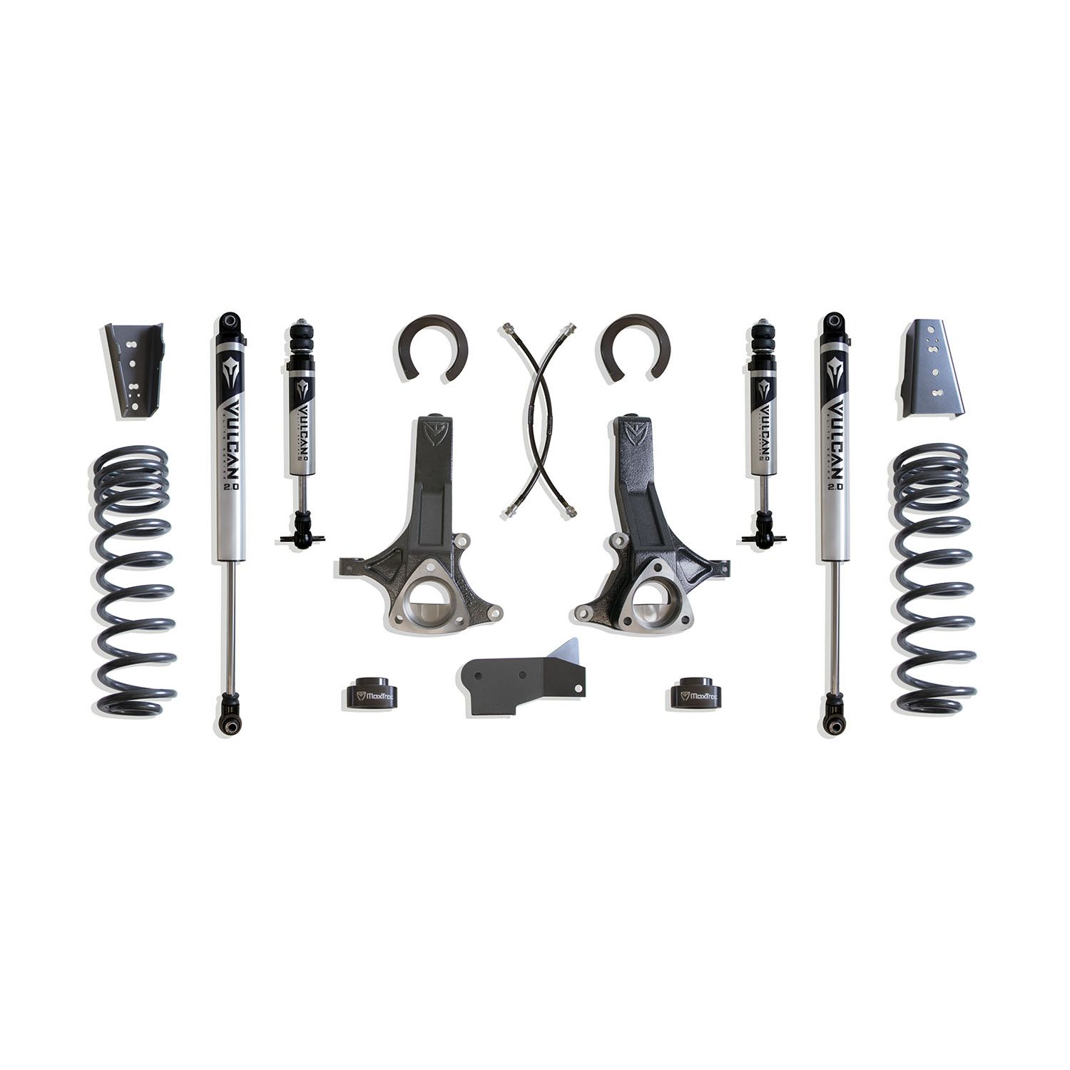 MAX TRAC SUSPENSION'S KIT# K882465V IS A COMPLETE 6.5" LIFT KIT INCLUDING FRONT SPACERS, SPINDLES, EXTENDED BRAKE LINES, REAR COILS, SPACERS, TRAC BAR BRACKET, SWAY BAR BRACKETS & FRONT/REAR VULCAN SERIES SHOCKS