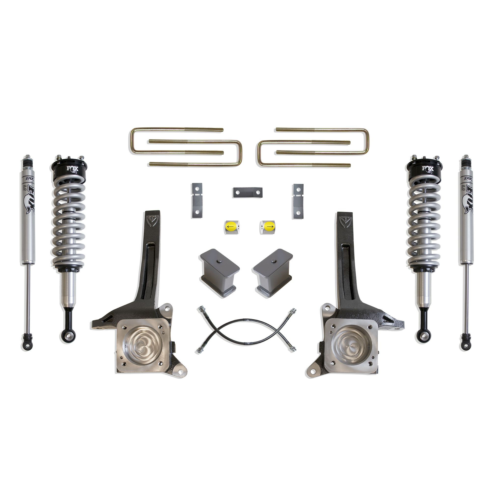 MAX TRAC SUSPENSION'S KIT# K886764F IS A COMPLETE 6" LIFT KIT INCLUDING FOX 2.0 PERFORMANCE SERIES COIL OVERS, SPINDLES, EXTENDED BRAKE LINES, BLOCKS, U-BOLTS, CARRIER BEARING KIT & FOX 2.0 PERFORMANCE SERIES REAR SHOCKS