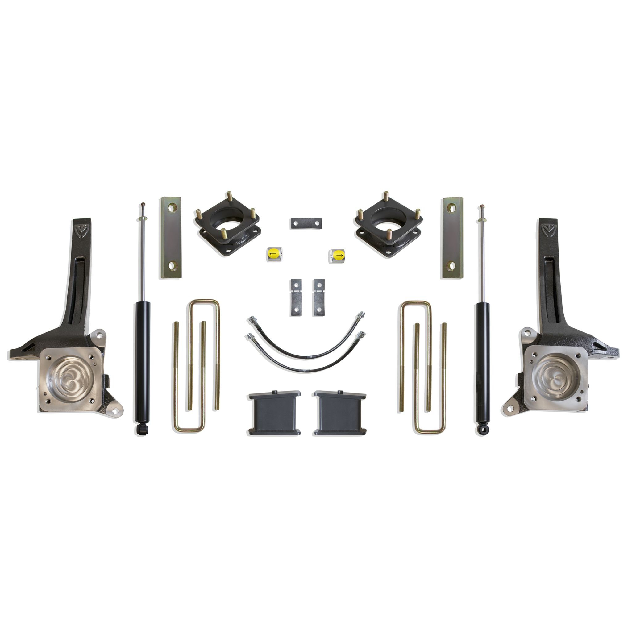 MAX TRAC SUSPENSION'S KIT# K886764 IS A COMPLETE 6" LIFT KIT INCLUDING SPINDLES, SPACERS, EXTENDED BRAKE LINES, BLOCKS, U-BOLTS, CARRIER BEARING KIT & MAX TRAC REAR SHOCKS