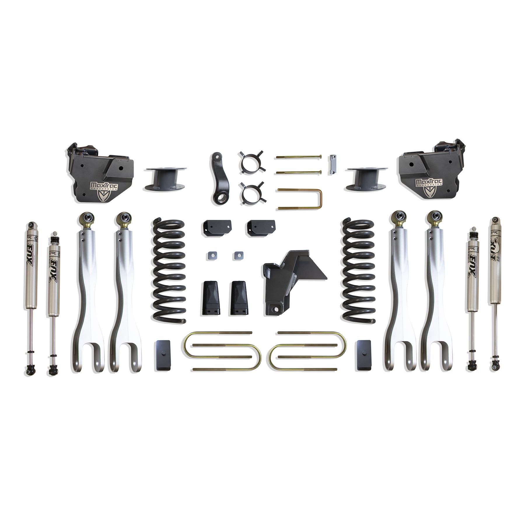 MAX TRAC SUSPENSION'S KIT# K947563FLA IS A COMPLETE 6" LIFT KIT INCLUDING DIESEL COILS, FORGED ALUMINUM 4 LINKS, TRAC BAR BRACKET, PITMAN ARM, SWAY BAR BRACKETS, BUMP STOPS, BLOCKS, U-BOLTS, REAR AIR BAG SPACERS & FRONT/REAR FOX 2.0 PERFORMANCE SERIES SHOCKS
