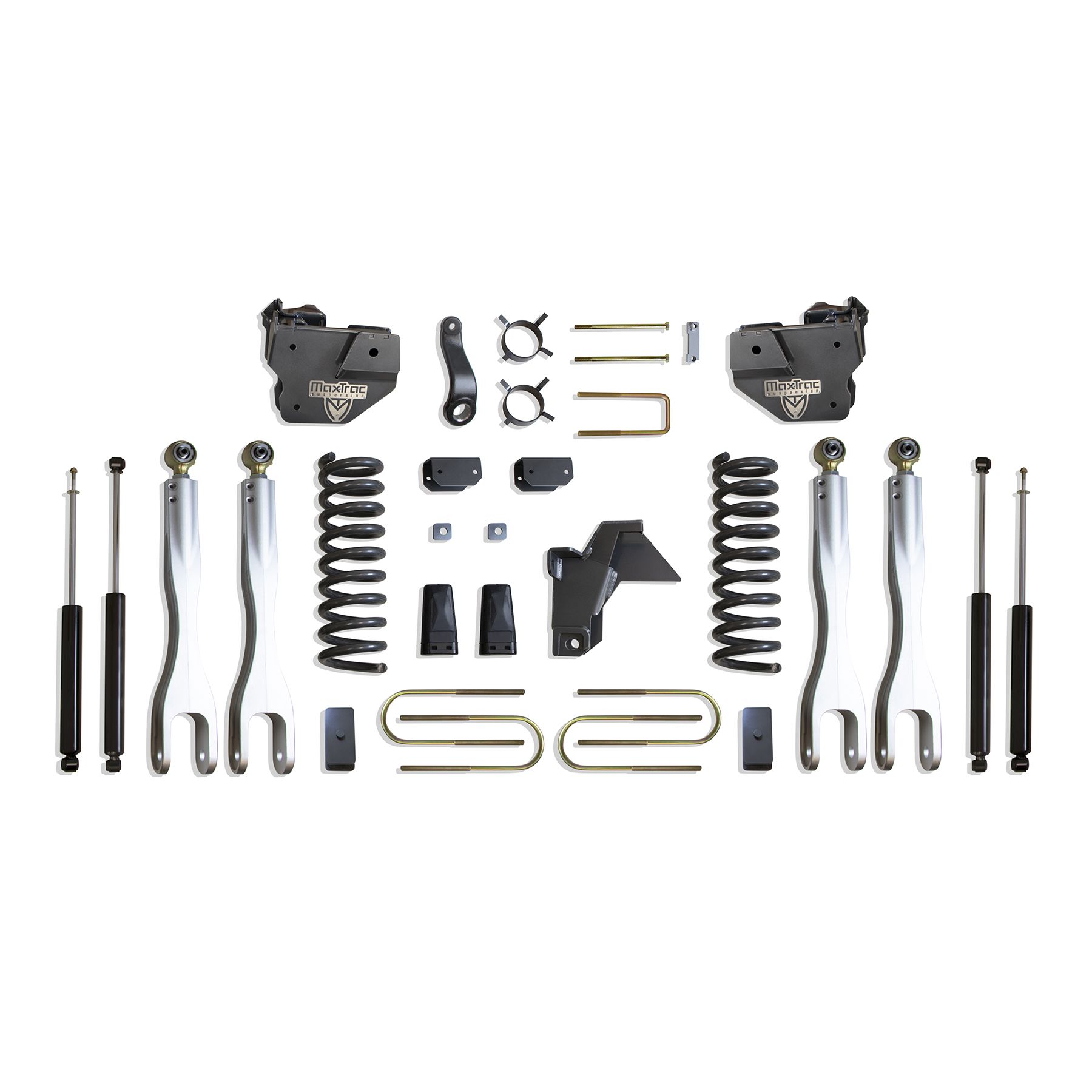 MAX TRAC SUSPENSION'S KIT# K947563L IS A COMPLETE 6" LIFT KIT INCLUDING DIESEL COILS, FORGED ALUMINUM 4LINKS, TRAC BAR BRACKET, PITMAN ARM, SWAY BAR BRACKETS, BUMP STOPS, BLOCKS, U-BOLTS & FRONT/REAR MAX TRAC SHOCKS