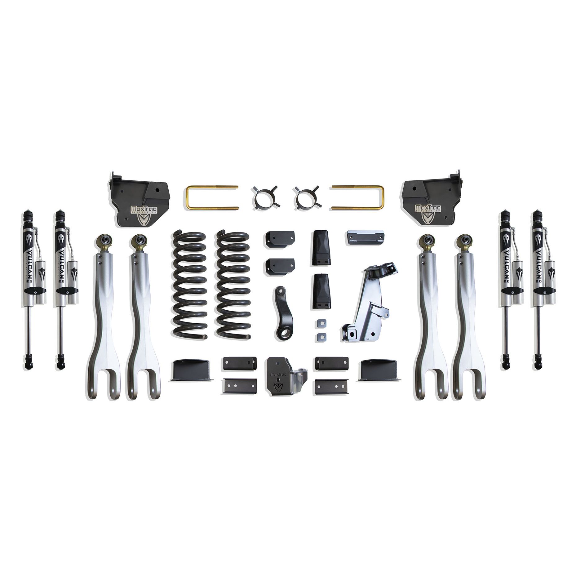 MAX TRAC SUSPENSION'S KIT# K947263VRLA IS A COMPLETE 6" LIFT KIT INCLUDING DIESEL COILS, FORGED ALUMINUM 4 LINKS, TRAC BAR BRACKET, PITMAN ARM, SWAY BAR BRACKETS, BUMP STOPS, REAR AIR BAG SPACERS, TRAC BAR BRACKET, SWAY BAR BRACKETS, BUMP STOP EXTENSIONS & FRONT/REAR VULCAN SERIES SHOCKS
