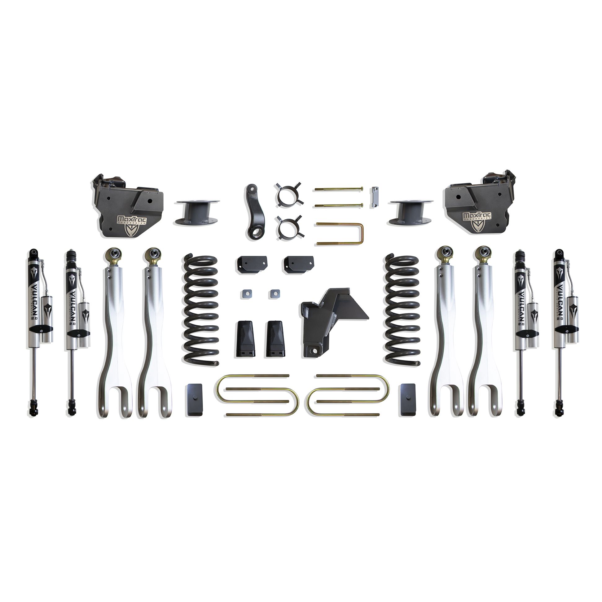 MAX TRAC SUSPENSION'S KIT# K947563VRLA IS A COMPLETE 6" LIFT KIT INCLUDING DIESEL COILS, FORGED ALUMINUM 4 LINKS, TRAC BAR BRACKET, PITMAN ARM, SWAY BAR BRACKETS, BUMP STOPS, BLOCKS, U-BOLTS, REAR AIR BAG SPACERS & FRONT/REAR VULCAN SERIES SHOCKS