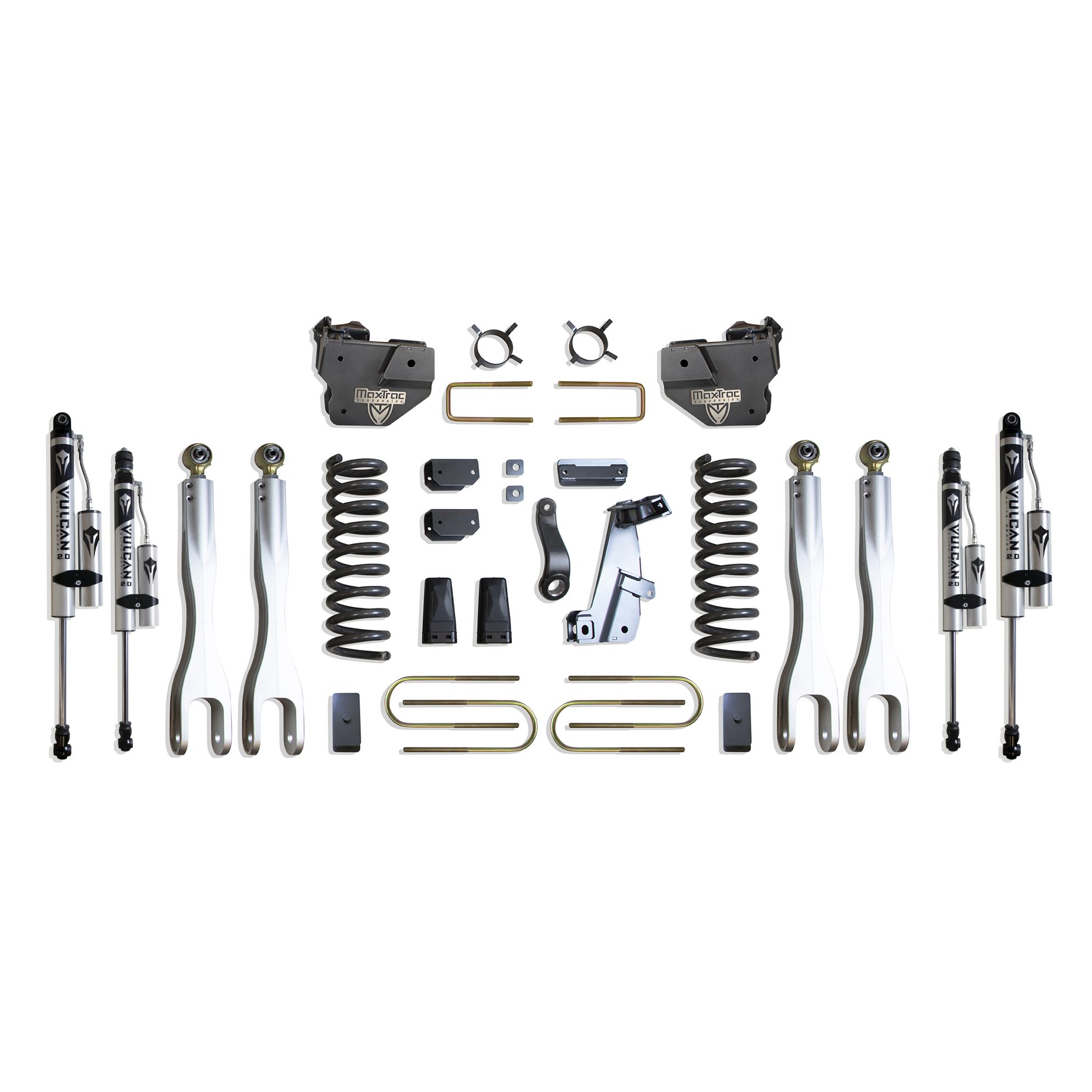 MAX TRAC SUSPENSION'S KIT# K947363VRL IS A COMPLETE 6" LIFT KIT INCLUDING DIESEL COILS, FORGED ALUMINUM 4-LINKS, TRAC BAR BRACKET, PITMAN ARM, SWAY BAR BRACKETS, BUMP STOPS, BLOCKS, U-BOLTS & FRONT/REAR VULCAN SERIES RESERVOIR SHOCKS