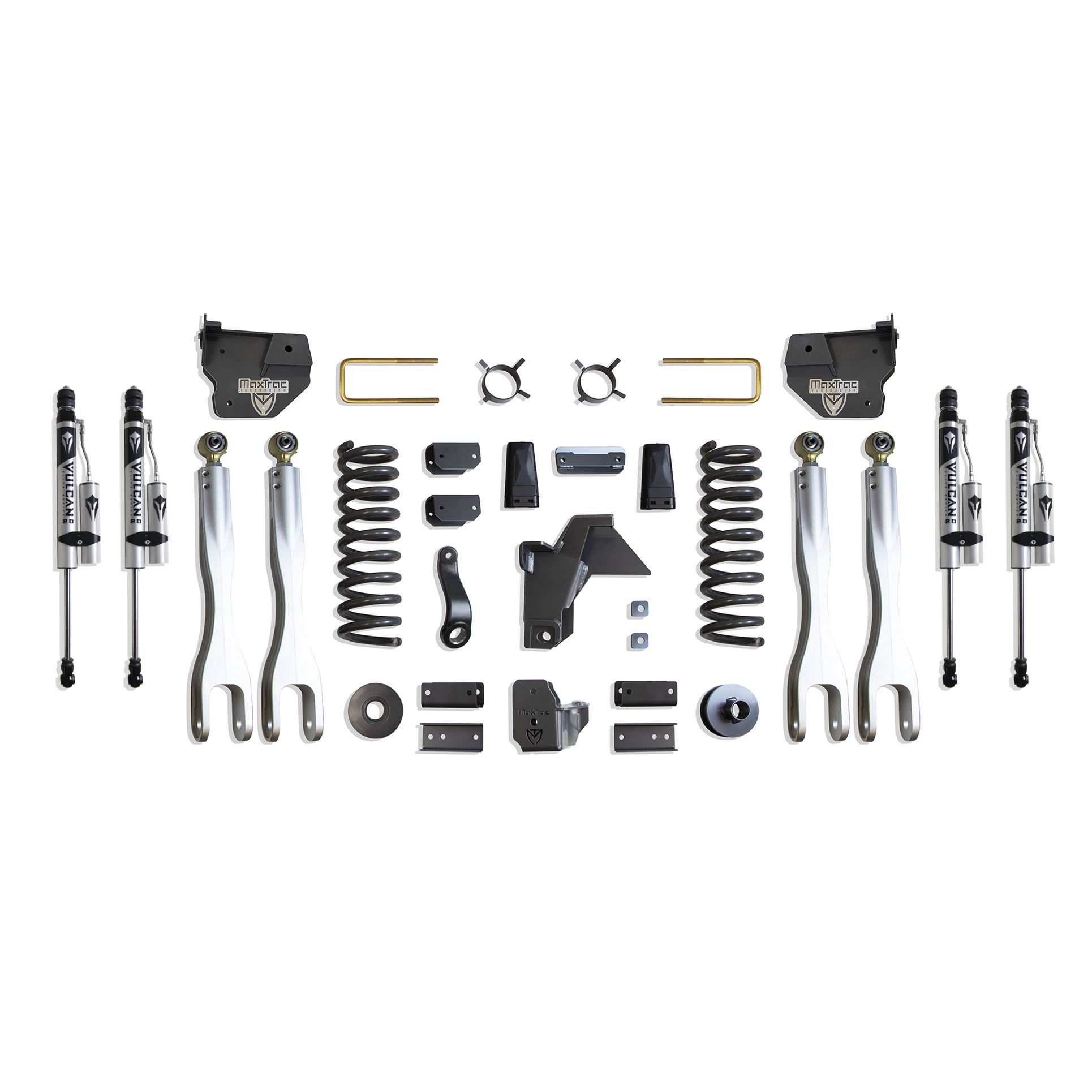 MAX TRAC SUSPENSION'S KIT# K947463VRL IS A COMPLETE 6" LIFT KIT INCLUDING DIESEL COILS, FORGED ALUMINUM 4-LINKS, TRAC BAR BRACKET, PITMAN ARM, SWAY BAR BRACKETS, BUMP STOPS, REAR COIL SPACERS, TRAC BAR BRACKET, SWAY BAR BRACKETS, BUMP STOP EXTENSIONS & FRONT/REAR VULCAN SERIES SHOCKS