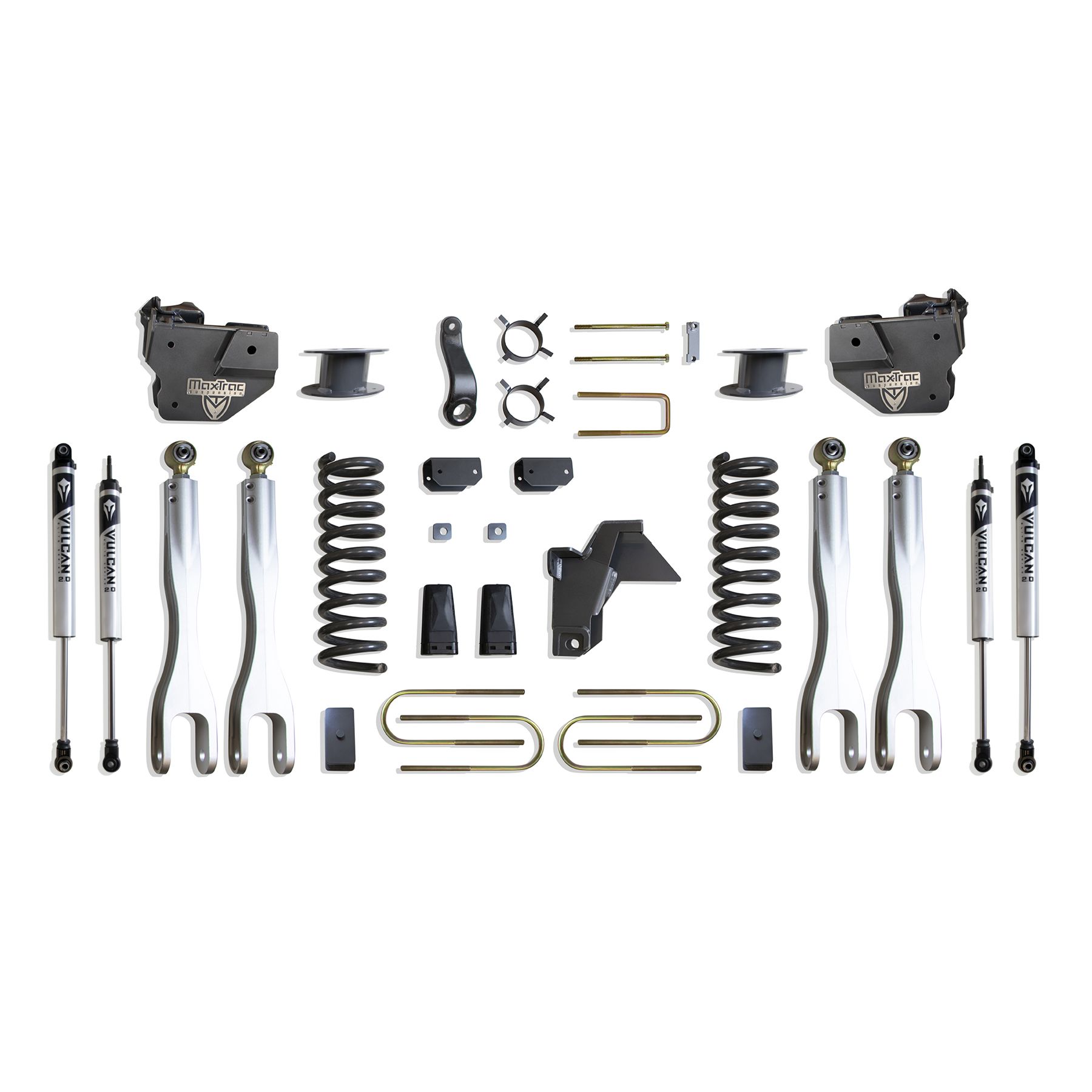 MAX TRAC SUSPENSION'S KIT# K947563VLA IS A COMPLETE 6" LIFT KIT INCLUDING DIESEL COILS, FORGED ALUMINUM 4 LINKS, TRAC BAR BRACKET, PITMAN ARM, SWAY BAR BRACKETS, BUMP STOPS, BLOCKS, U-BOLTS, REAR AIR BAG SPACERS & FRONT/REAR VULCAN SERIES SHOCKS