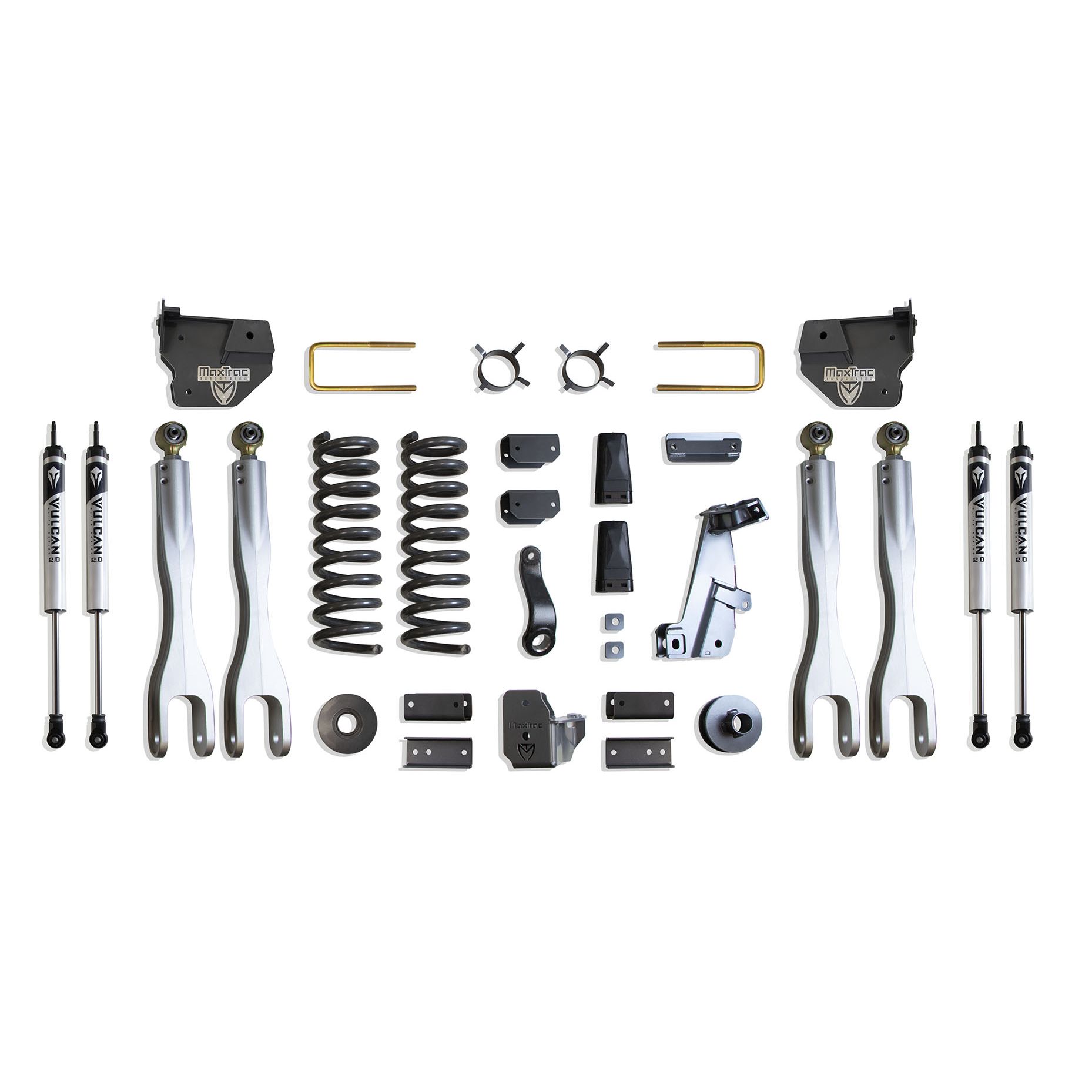 MAX TRAC SUSPENSION'S KIT# K947263VL IS A COMPLETE 6" LIFT KIT INCLUDING DIESEL COILS, FORGED ALUMINUM 4-LINKS, TRAC BAR BRACKET, PITMAN ARM, SWAY BAR BRACKETS, BUMP STOPS, REAR COIL SPACERS, TRAC BAR BRACKET, SWAY BAR BRACKETS, BUMP STOP EXTENSIONS & FRONT/REAR VULCAN SERIES SHOCKS