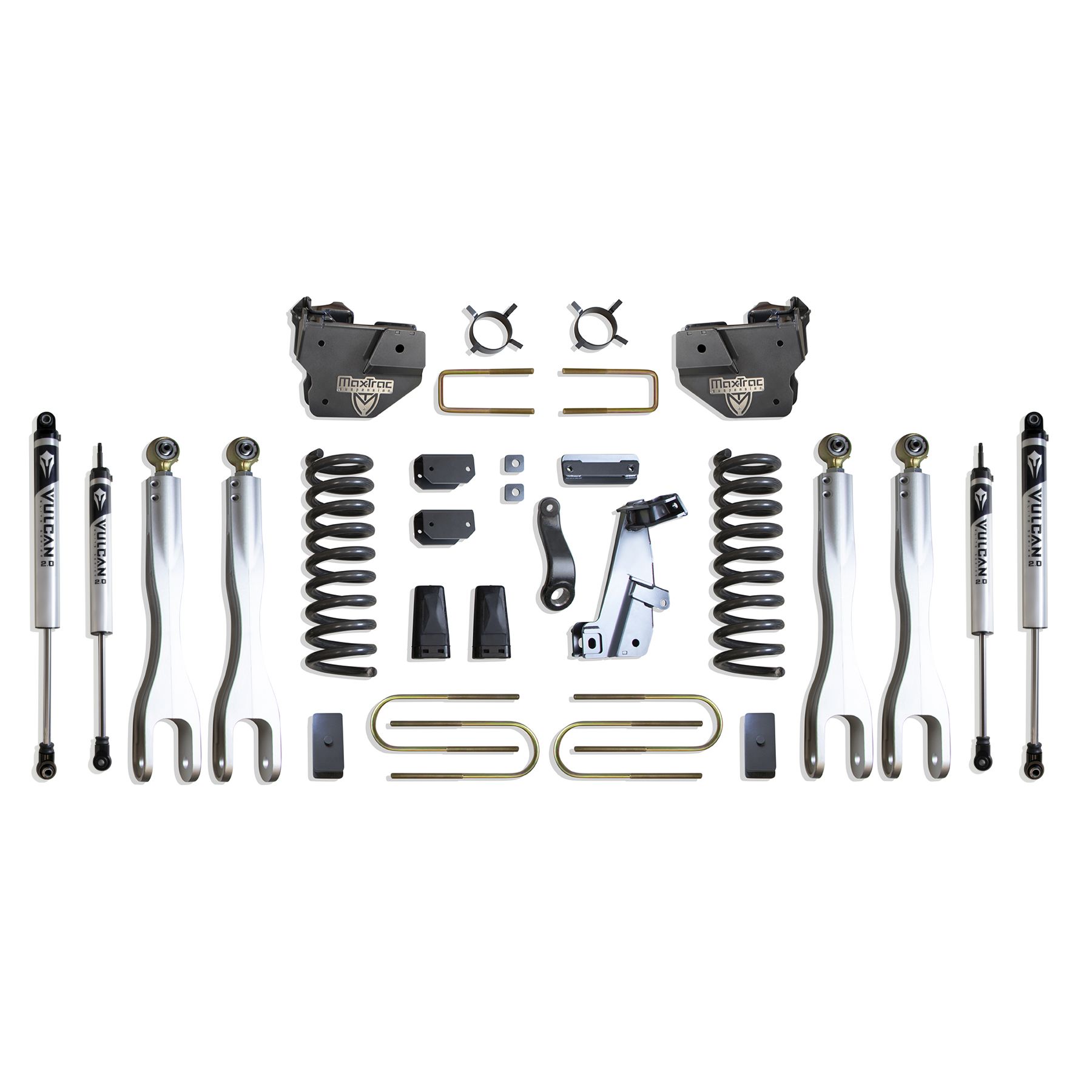 MAX TRAC SUSPENSION'S KIT# K947363VL IS A COMPLETE 6" LIFT KIT INCLUDING DIESEL COILS, FORGED ALUMINUM 4-LINKS, TRAC BAR BRACKET, PITMAN ARM, SWAY BAR BRACKETS, BUMP STOPS, BLOCKS, U-BOLTS & FRONT/REAR VULCAN SERIES SHOCKS