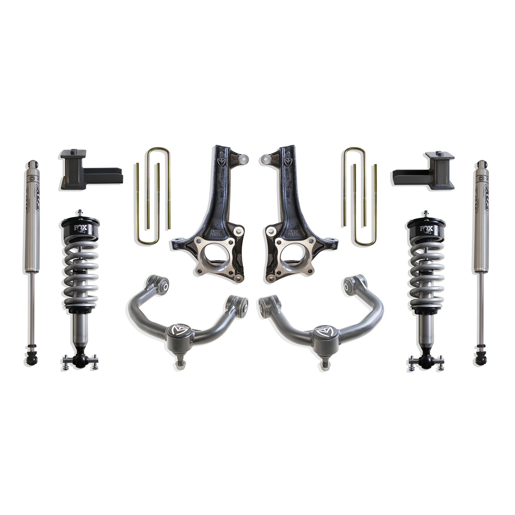 MAX TRAC SUSPENSION'S KIT# K884164FC IS A COMPLETE 6" LIFT KIT INCLUDING FOX 2.0 PERFORMANCE SERIES COIL OVERS, SPINDLES, CONTROL ARMS, BLOCKS, U-BOLTS & FOX 2.0 PERFORMANCE SERIES REAR SHOCKS