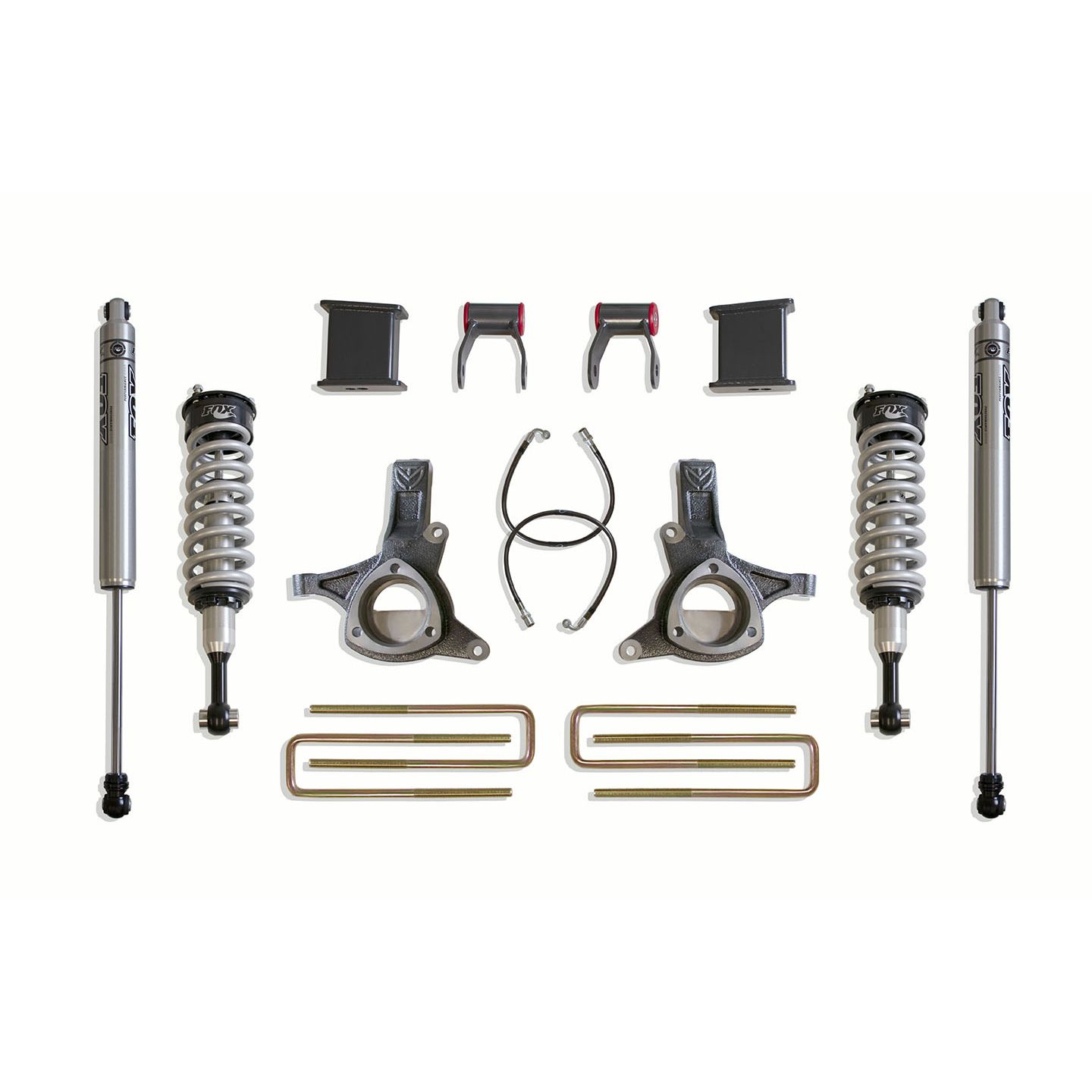 MAX TRAC SUSPENSION'S KIT# K881375F IS A COMPLETE 7" LIFT KIT INCLUDING FOX 2.0 PERFORMANCE SERIES COILOVERS, SPINDLES, EXTENDED BRAKE LINES, BLOCKS, U-BOLTS & FOX 2.0 PERFORMANCE SERIES REAR SHOCKS