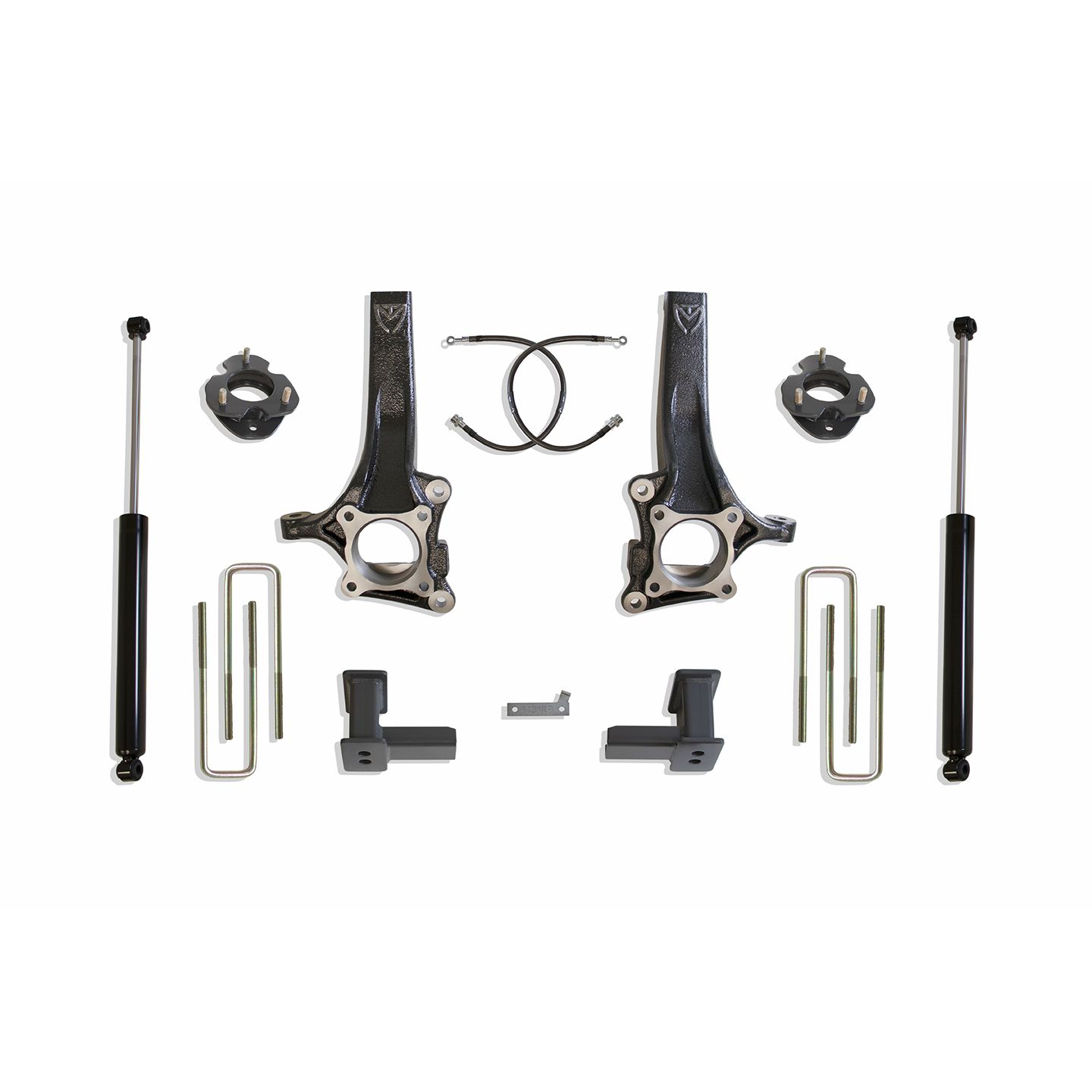 MAX TRAC SUSPENSION'S KIT# K883274 IS A COMPLETE 7" LIFT KIT INCLUDING SPINDLES, EXTENDED BRAKE LINES, SPACERS, BLOCKS, U-BOLTS & MAX TRAC REAR SHOCKS