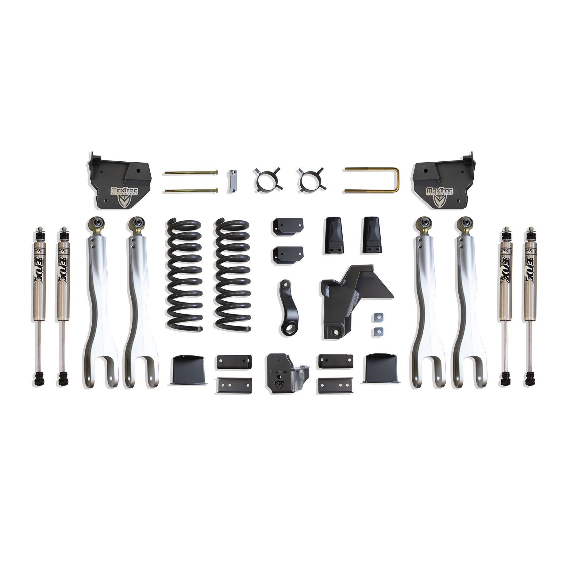 MAX TRAC SUSPENSION'S KIT# K947485FLA IS A COMPLETE 8" LIFT KIT INCLUDING DIESEL COILS, FORGED ALUMINUM 4 LINKS, TRAC BAR BRACKET, PITMAN ARM, SWAY BAR BRACKETS, BUMP STOPS, REAR AIR BAG SPACERS, TRAC BAR BRACKET, SWAY BAR BRACKETS, BUMP STOP EXTENSIONS & FRONT/REAR FOX 2.0 PERFORMANCE SERIES SHOCKS