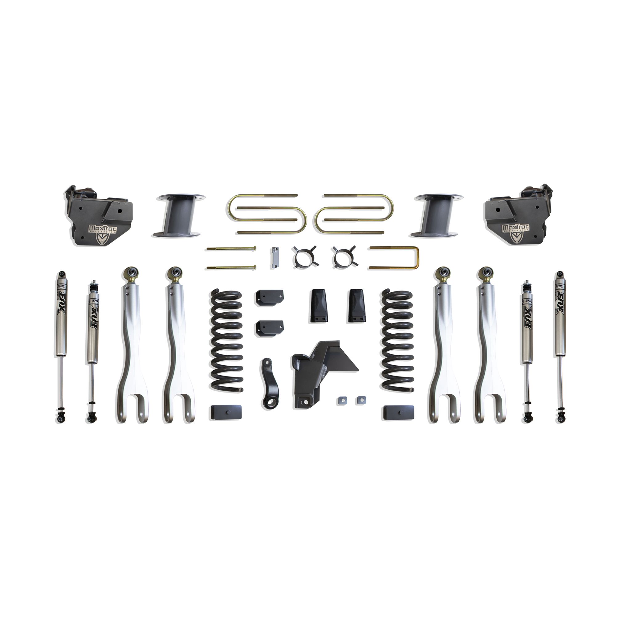 MAX TRAC SUSPENSION'S KIT# K947585FLA IS A COMPLETE 8" LIFT KIT INCLUDING DIESEL COILS, FORGED ALUMINUM 4 LINKS, TRAC BAR BRACKET, PITMAN ARM, SWAY BAR BRACKETS, BUMP STOPS, BLOCKS, U-BOLTS, REAR AIR BAG SPACERS & FRONT/REAR FOX 2.0 PERFORMANCE SERIES SHOCKS