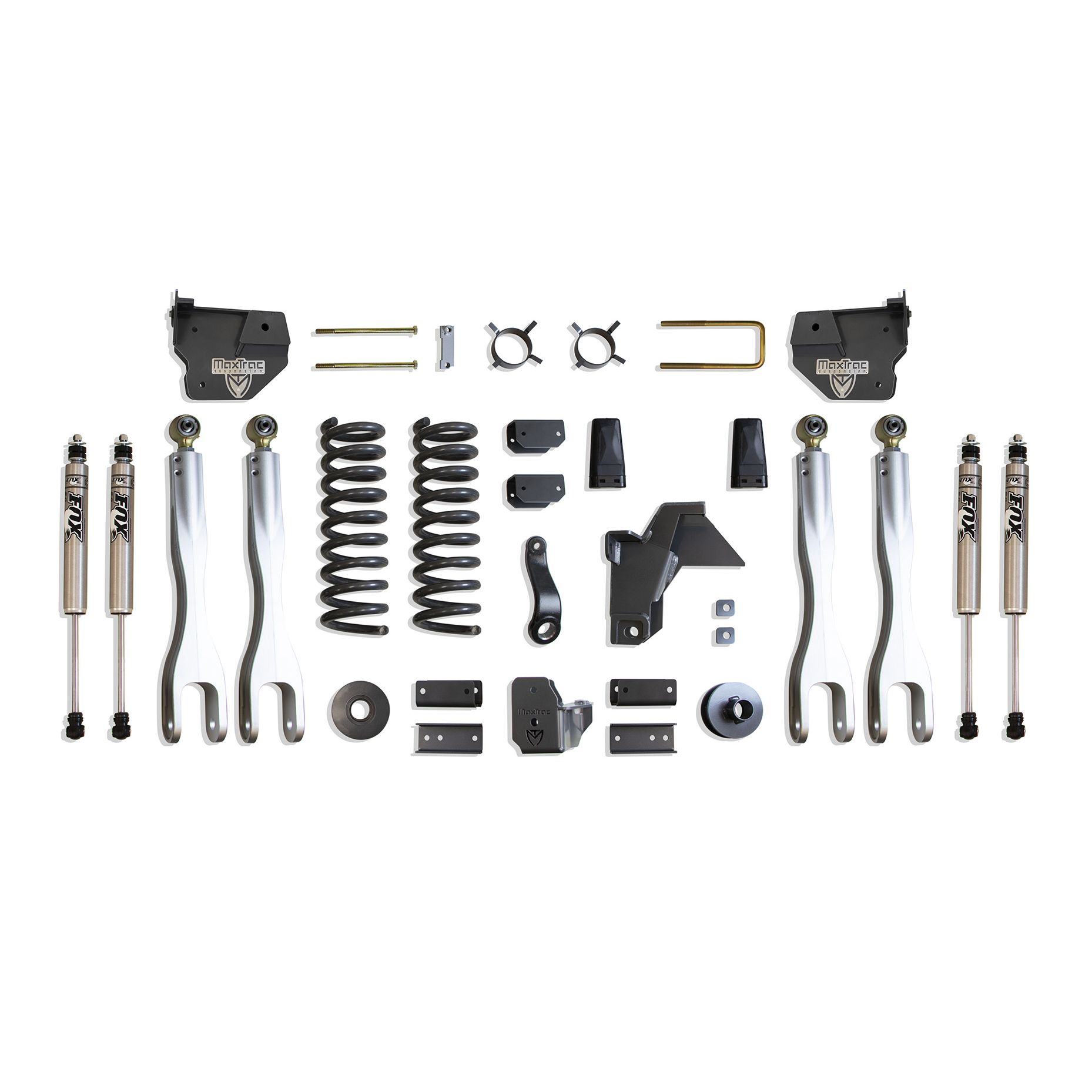 MAX TRAC SUSPENSION'S KIT# K947485FL IS A COMPLETE 8" LIFT KIT INCLUDING DIESEL COILS, FORGED ALUMINUM 4-LINKS, TRAC BAR BRACKET, PITMAN ARM, SWAY BAR BRACKETS, BUMP STOPS, REAR COIL SPACERS, TRAC BAR BRACKET, SWAY BAR BRACKETS, BUMP STOP EXTENSIONS & FRONT/REAR FOX 2.0 PERFORMANCE SERIES SHOCKS