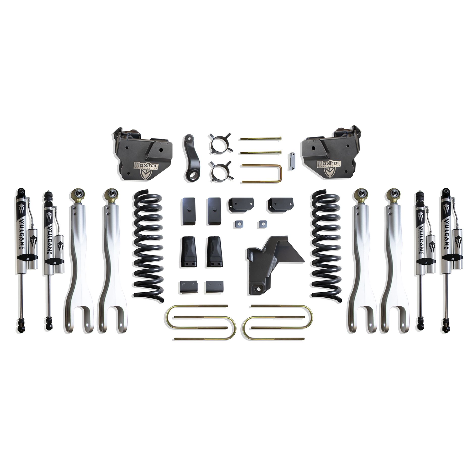 MAX TRAC SUSPENSION'S KIT# K947585VRL IS A COMPLETE 8" LIFT KIT INCLUDING DIESEL COILS, FORGED ALUMINUM 4-LINKS, TRAC BAR BRACKET, PITMAN ARM, SWAY BAR BRACKETS, BUMP STOPS, BLOCKS, U-BOLTS & FRONT/REAR VULCAN SERIES RESERVOIR SHOCKS