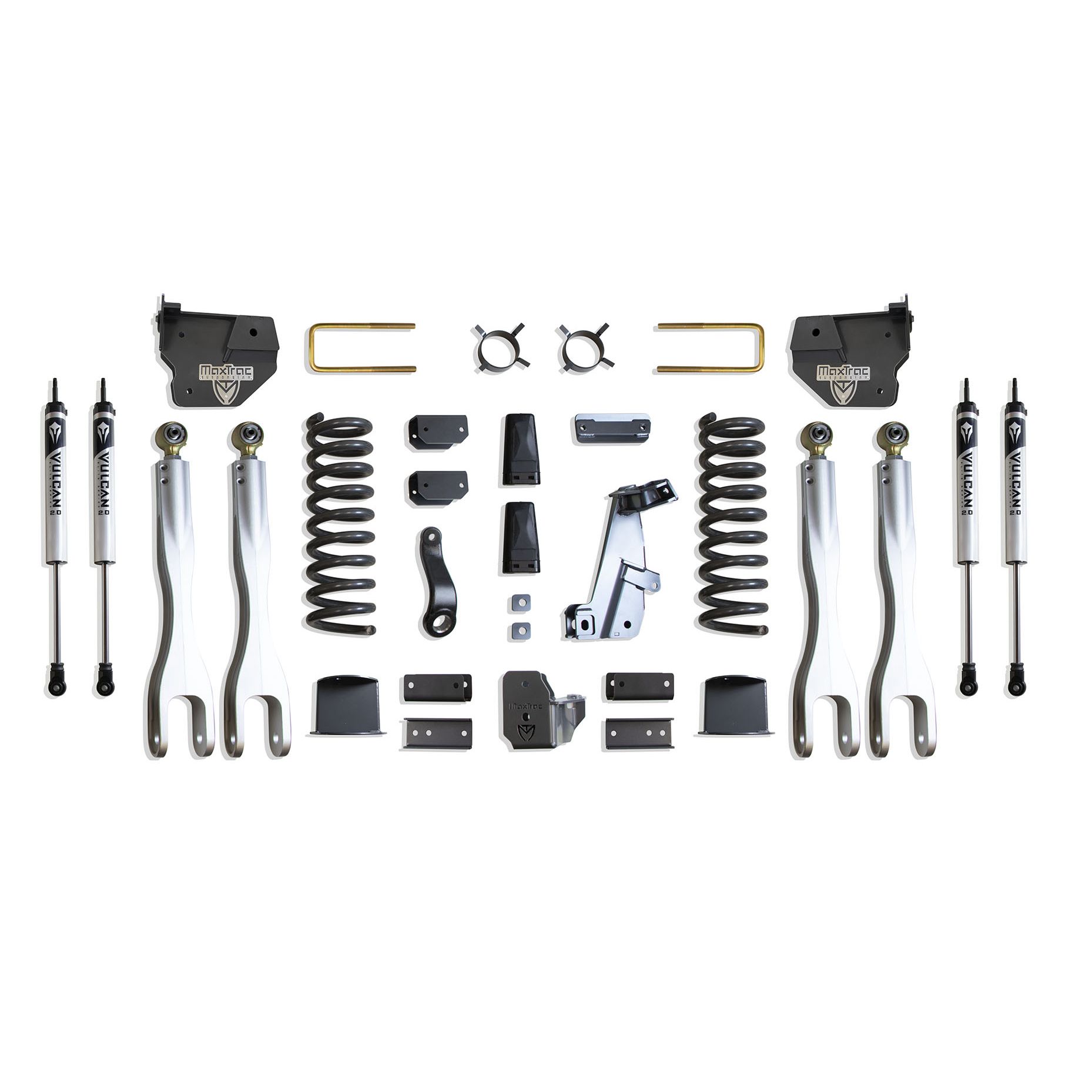 MAX TRAC SUSPENSION'S KIT# K947285VLA IS A COMPLETE 8" LIFT KIT INCLUDING DIESEL COILS, FORGED ALUMINUM 4 LINKS, TRAC BAR BRACKET, PITMAN ARM, SWAY BAR BRACKETS, BUMP STOPS, REAR AIR BAG SPACERS, TRAC BAR BRACKET, SWAY BAR BRACKETS, BUMP STOP EXTENSIONS & FRONT/REAR VULCAN SERIES SHOCKS
