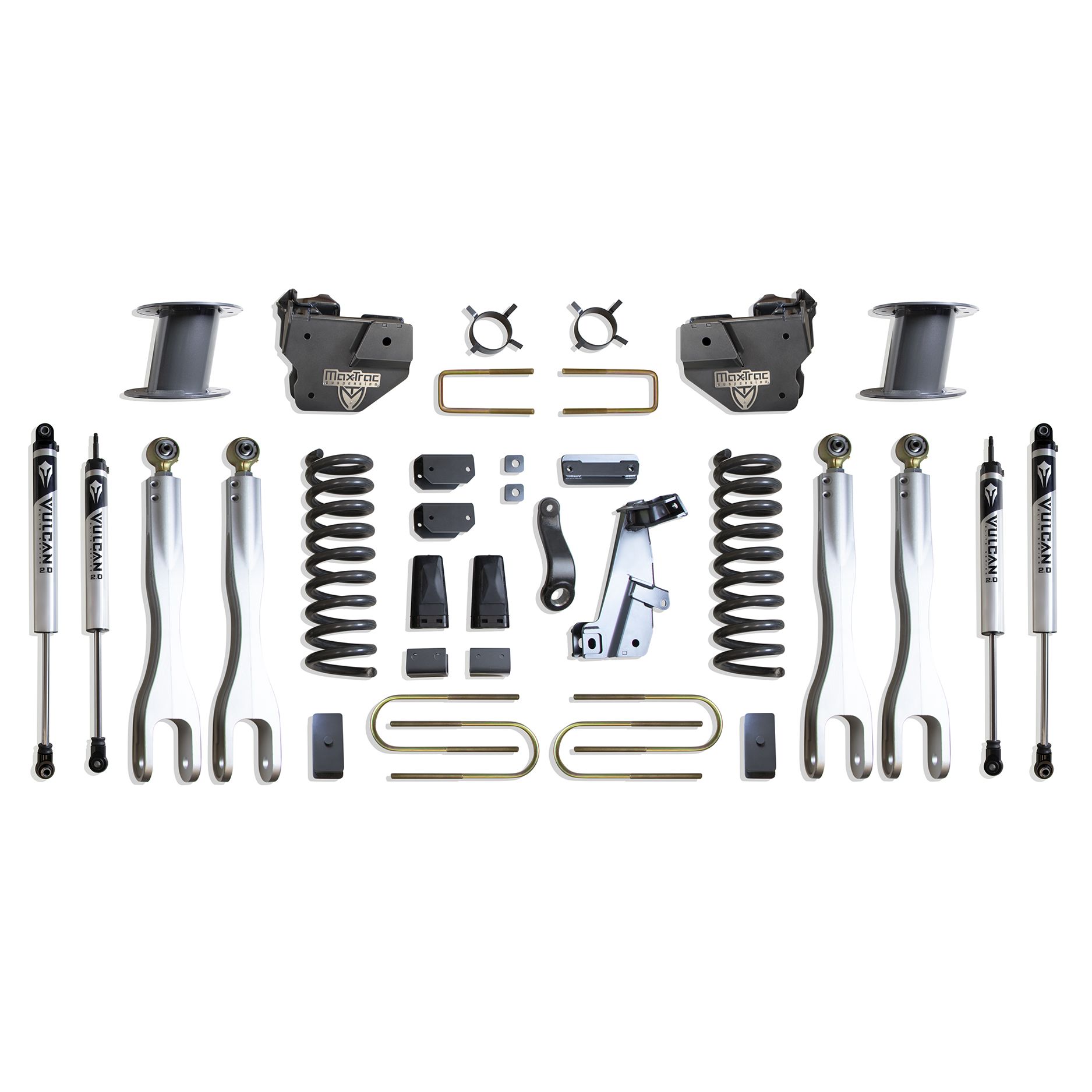 MAX TRAC SUSPENSION'S KIT# K947385VLA IS A COMPLETE 8" LIFT KIT INCLUDING DIESEL COILS, FORGED ALUMINUM 4 LINKS, TRAC BAR BRACKET, PITMAN ARM, SWAY BAR BRACKETS, BUMP STOPS, BLOCKS, U-BOLTS, REAR AIR BAG SPACERS & FRONT/REAR VULCAN SERIES SHOCKS