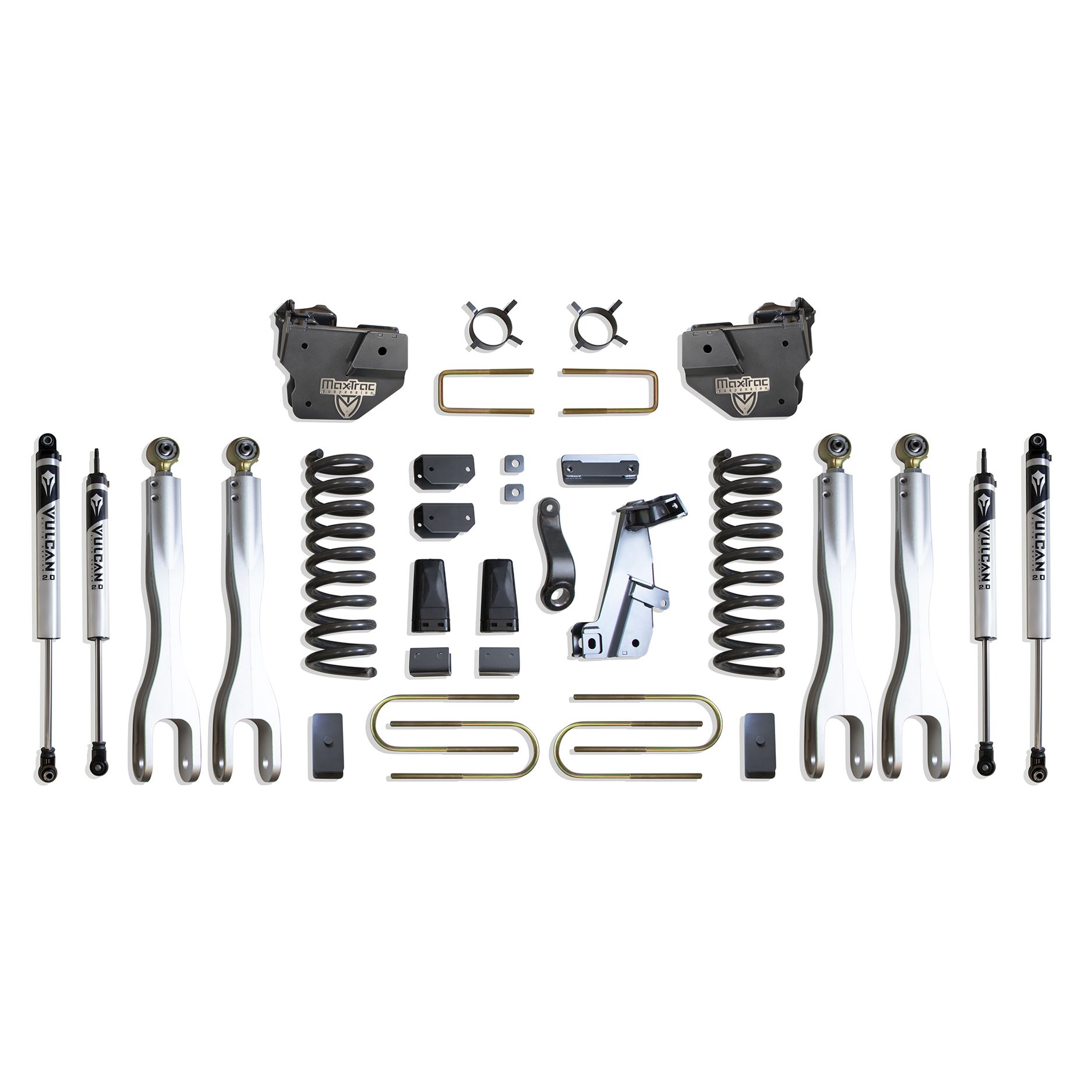 MAX TRAC SUSPENSION'S KIT# K947385VL IS A COMPLETE 8" LIFT KIT INCLUDING DIESEL COILS, FORGED ALUMINUM 4-LINKS, TRAC BAR BRACKET, PITMAN ARM, SWAY BAR BRACKETS, BUMP STOPS, BLOCKS, U-BOLTS & FRONT/REAR VULCAN SERIES SHOCKS