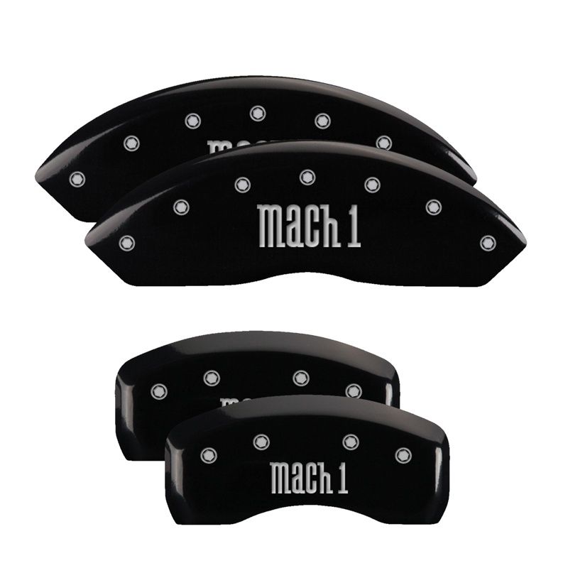 Set of 4 caliper covers, Engraved Front and Rear: Mach 1, Black powder coat finish, silver characters.