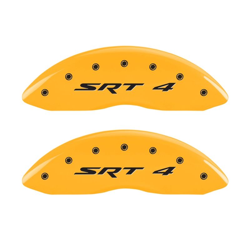 Front set 2 caliper covers, Engraved Front: SRT4, Yellow powder coat finish, black characters