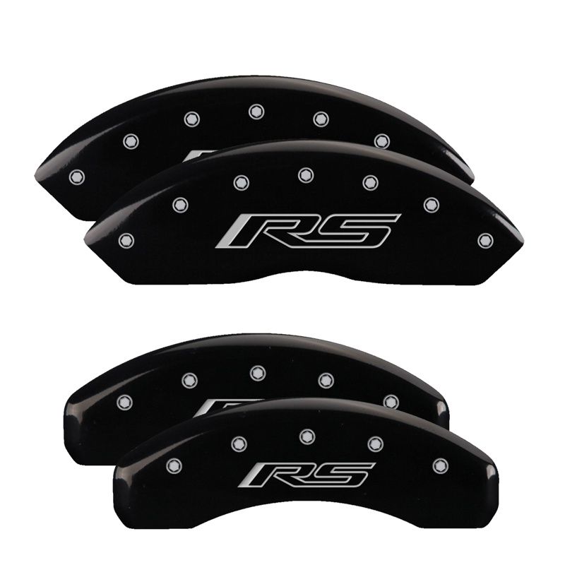 Set of 4 caliper covers, Engraved Front and Rear: Gen 5/RS, Black powder coat finish, silver characters.