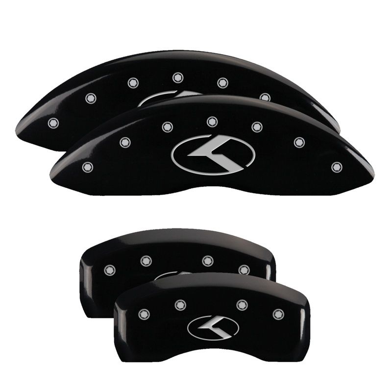 Set Of 4 Caliper Covers, Engraved Front And Rear: Circle K/Kia, Black Powder Coat Finish, Silver Characters