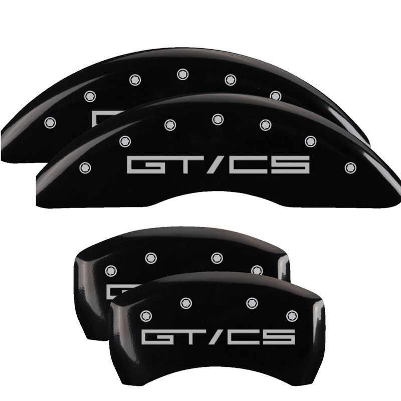 Set Of 4 Caliper Covers, Engraved Front: Gt/Cs – Engraved Rear: Gt/Cs, Black Powder Coat Finish, Silver Characters