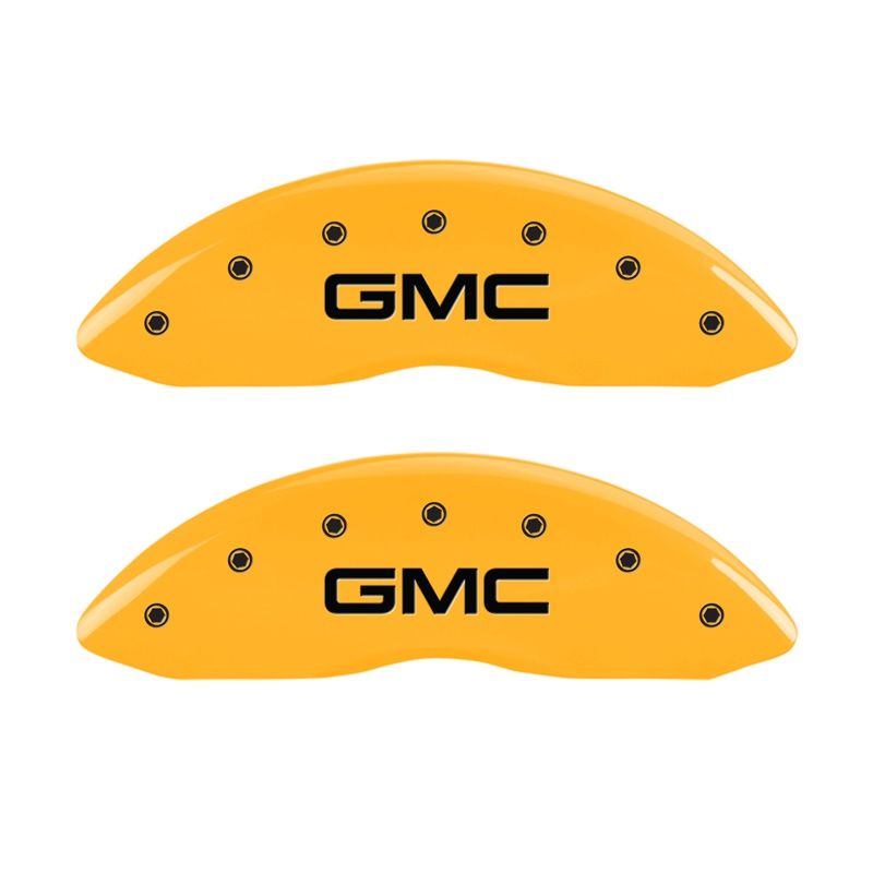 Front set 2 caliper covers, Engraved Front: GMC, Yellow powder coat finish, black characters