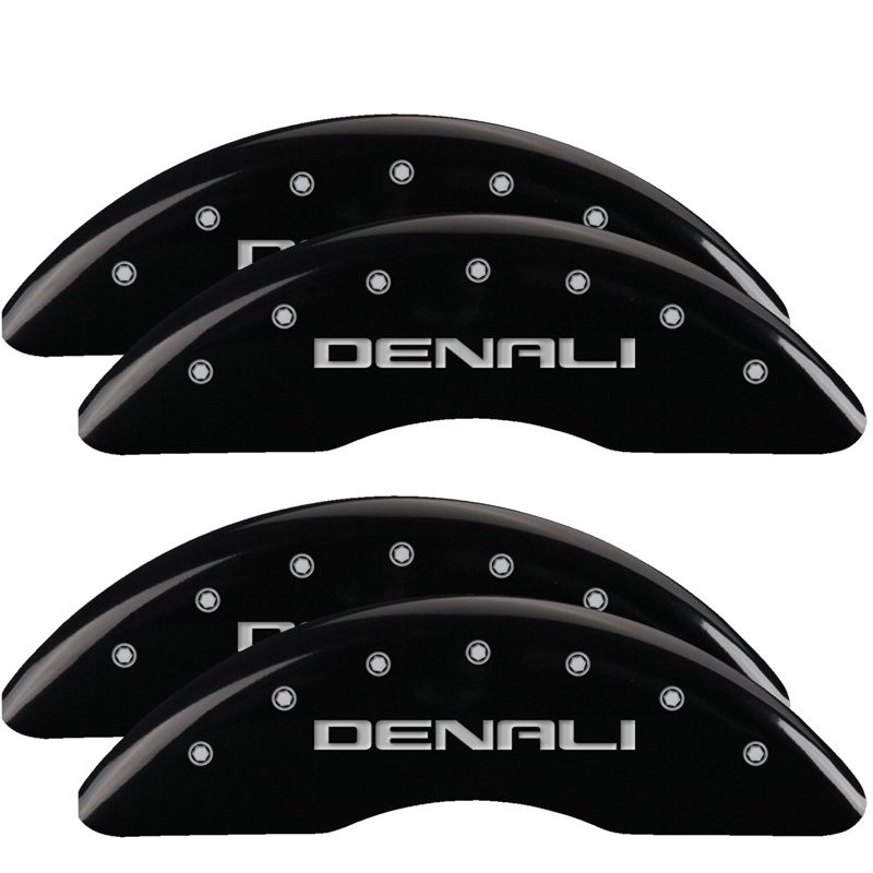 Set of 4 caliper covers, Engraved Front and Rear: Denali, Black powder coat finish, silver characters