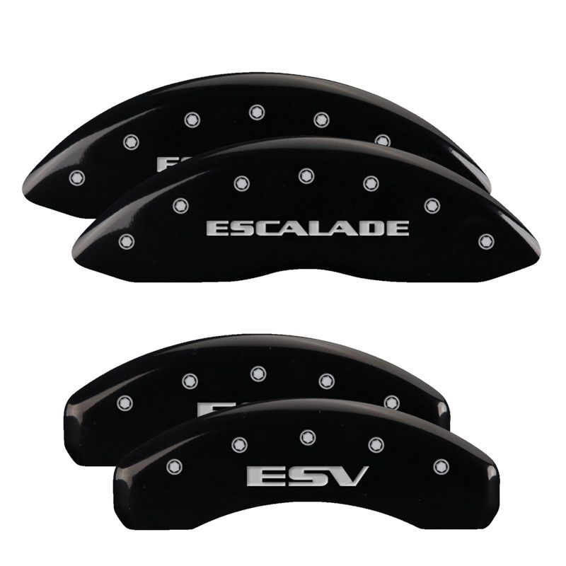 Set of 4 caliper covers, Engraved Front: Escalade – Engraved Rear: ESV, Black powder coat finish, silver characters