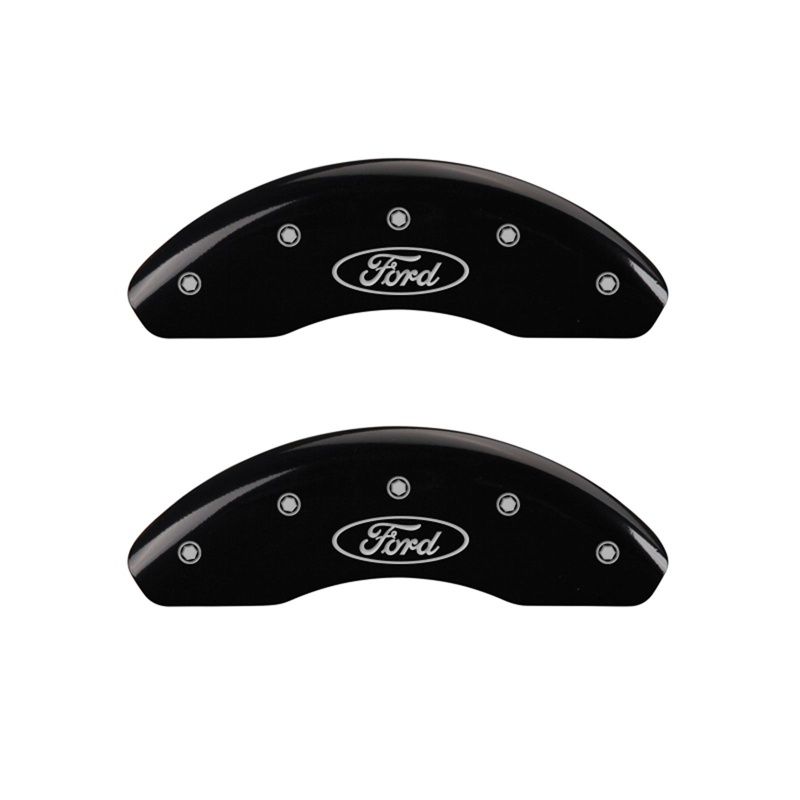 Front set 2 caliper covers, Engraved Front: Oval logo/Ford, Black powder coat finish, silver characters.
