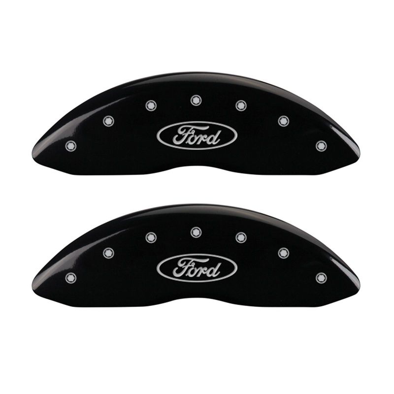 Front set 2 caliper covers, Engraved Front: Oval logo/Ford, Black powder coat finish, silver characters.
