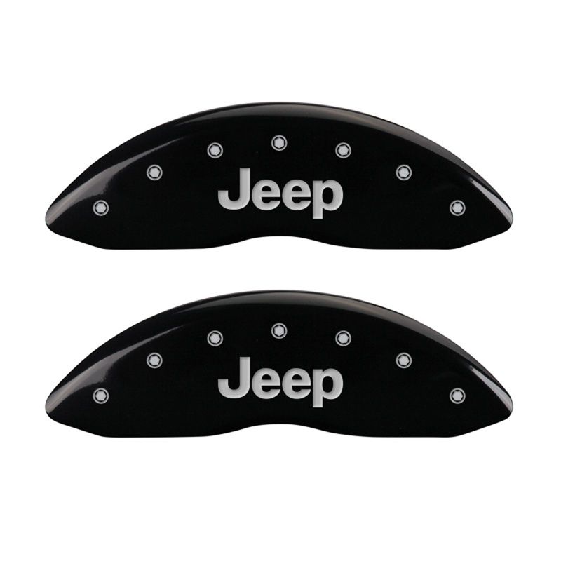 Front set 2 caliper covers, Engraved Front: JEEP, Black powder coat finish, silver characters.