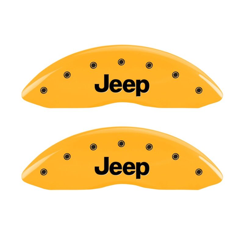 Front set 2 caliper covers, Engraved Front: JEEP, Yellow powder coat finish, black characters