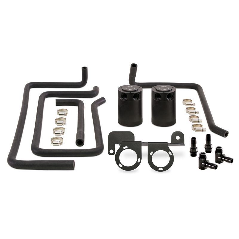 Give your VQ37 powered Infiniti the protection it deserves with the Mishimoto 2007-2013 Infiniti G37 Baffled Oil Catch Can kit. Our complete, dual-can setup combats the one issue that effects every modern day engine ? blow-by. As a side effect of how your engine operates, and to keep the environmentalists satisfied, engine oil droplets make their way back through the intake tract and can build carbon on the valves ultimately robbing your high-output V6 of its performance. With our G37 Baffled oil Catch Can Kit installed, you will have an unbeatable setup that will effectively intercept the contaminated crankcase gasses and prevent them from entering the intake.Our complete kit utilizes a pair of our tried and true 6061 aluminum compact catch cans that mount in line with the VQ37VHR?s dual PCV system using an application specific mounting bracket. It's more of what?s on the inside that counts for these catch cans, however. Our compact oil catch cans come equipped with a highly engineered baffle designed to condense oil droplets and fuel vapors to be collected in the bottom of the can. We've also incorporated internal air diverters to ensure a smooth, and consistent flow of your PCV pressure. As an added line of defense, each one of our catch cans has a 50-micron bronze filter installed to trap any potential rogue oil droplets from escaping into the return line. Finally, every kit comes with a full set of pre-molded flat-black hoses that look right at home under the hood of your G37 and also ships with the Mishimoto Lifetime Warranty.Our catch cans are different from most air-oil-separator (AOS) systems on a few levels. First, our catch cans are not heated. This means that all of the blow-by is able to condense in the can, including low-octane oil vapors and contaminated fuel vapors. Most AOS systems also drain the blow-by back into the oil pan, while our catch cans trap the blow-by and keep it out of the engine permanently. If you?ve seen what We've
