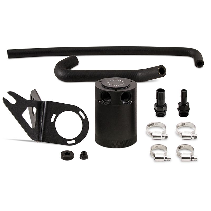 Kia came out of nowhere to stake their claim in the luxury sedan market segment. With the intuitive automatic transmission coupled to the 3.3L twin-turbocharged V6, It's no wonder the likes of standard benchmarks are worried. The real question is, how long will that last. Direct injection combined with the high-compression of turbocharging means a hotbed for carbon buildup. Luckily, Mishimoto is here to keep your Stinger running to its full potential with the 2018+ Kia Stinger GT Direct-Fit Catch Can Kit.The 2018+ Kia Stinger GT catch can kit is mounted with a robust, application-specific bracket, our patent pending compact 2-port catch can is installed in line with the factory PCV system in order to separate fuel vapors and oil droplets from the relieving crankcase pressure. As an extra layer of defense, our catch can also includes a 50-micron bronze filter designed for capturing any rogue blow-by particles. Installation is a breeze with our pre-molded hoses, keeping the time you spend under the hood to less than 30 minutes. Like all of our products, the Mishimoto 2018+ Kia Stinger GT Direct-Fit Catch Can Kit is covered under the Mishimoto Lifetime Warranty to protect your investment on more than one level.Our catch cans are different from most air-oil-separator (AOS) systems on a few levels. First, our catch cans are not heated. This means that all of the blow-by is able to condense in the can, including low-octane oil vapors and contaminated fuel vapors. Most AOS systems also drain the blow-by back into the oil pan, while our catch cans trap the blow-by and keep it out of the engine permanently. If you?ve seen what We've seen in the bottom of our catch cans, you won?t want that draining back into your oil either.