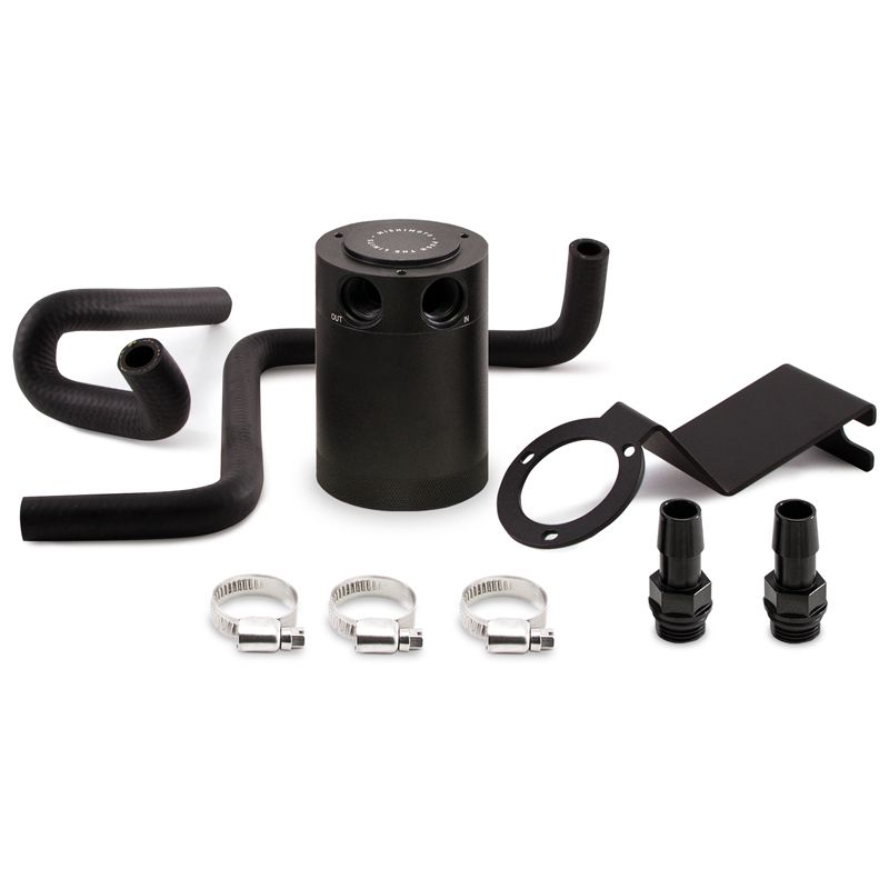 The Mishimoto Baffled Oil Catch Can Kit is designed and engineered to work on your BRZ/86 to eliminate harmful blow by vapors from re-entering your engine. The FA20 in the BRZ/86 utilizes a slightly different type of direct injection system that also uses port fuel injectors to help reduce carbon buildup. Even though carbon buildup isn't as severe as most direct-injected engines, there is still enough that you will need this catch can kit to help your boxer engine run its best. Thousands of test miles were logged on a Subaru BRZ to determine what can setup would work the best. Mishimoto engineers found that most vehicles, placing the catch can in the vacuum assisted PCV system of the vehicle will yield the most amount of oil accumulation during normal and aggressive driving. Where a catch can placed on the crankcase vent system on the front of the engine will yield nearly no accumulation on stock or modified vehicles. Having only one catch can, tied into the PCV system on the back of the engine will, by far, work the best for the vast majority of BRZ/86 vehicles on the road. Mishimoto engineers found that a second catch can on the crankcase vent side will only be beneficial for vehicles with forced induction. The Mishimoto BRZ/86 catch can kit uses the Mishimoto 2-Port Compact Baffled Oil Catch Can with a bronze filter, and internal baffled to better separate the oil from the crankcase vapors. It also includes one direct fit mounting bracket that not only is extremely easy to install but also fits right hand drive as well! The BRZ/86 catch can kit comes with two direct fit hoses designed to fit right onto the 10mm PCV valve and into the 12mm port on the intake manifold. Two CNC-machined aluminum, in barb fittings connect the hoses to the can. And, like every Mishimoto oil catch can, this baffled catch can kit comes with the Mishimoto Lifetime Warranty!
