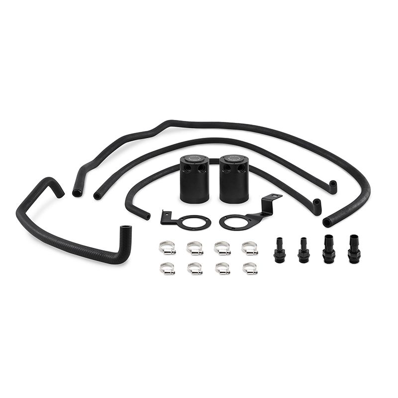 Mishimoto is proud to be expanding their line of 2015 WRX parts! The Mishimoto 2015-2016 WRX Baffled Oil Catch Can System is designed and engineered to reduce carbon buildup, a common issue with direct fuel injection engines such as the FA20-DIT. This 2015-2016 WRX system includes two Mishimoto Compact Baffled Oil Catch Cans, designed to separate oil particles from the PCV/CCV air that would normally be routed back to your intake. The internal air diverter turbulates the air longer and ensures all the oil sinks to the bottom of the can, leaving nothing but clean air to pass through the 50-micron bronze filter to the intake. An internal baffle keeps the collected oil from splashing around under race conditions. The 100-percent billet, 6061 aluminum cans include two black CNC-machined aluminum fittings and direct-fIt'steel powder-coated brackets which mount the cans in serviceable locations. This makes maintaining your 2015-2016 WRX system a breeze, as the cans are also 100-percent washable, unlike many other cans that require you to replace your filtration system. To connect the cans to your PCV and CCV systems, the Mishimoto 2015-2016 WRX Baffled Oil Catch Can System includes application-specific hoses, keeping your engine bay looking clean! Whether you are entering your 2015-2016 WRX in the local rallycross, or lapping at your next track day, trust Mishimoto and our line of 2015 WRX parts to keep your WRX cool. This kit, like our entire line of 2015 WRX parts, includes the signature Mishimoto Lifetime Warranty. Our catch cans are different from most air-oil-separator (AOS) systems on a few levels. First, our catch cans are not heated. This means that all of the blow-by is able to condense in the can, including low-octane oil vapors and contaminated fuel vapors. Most AOS systems also drain the blow-by back into the oil pan, while our catch cans trap the blow-by and ke