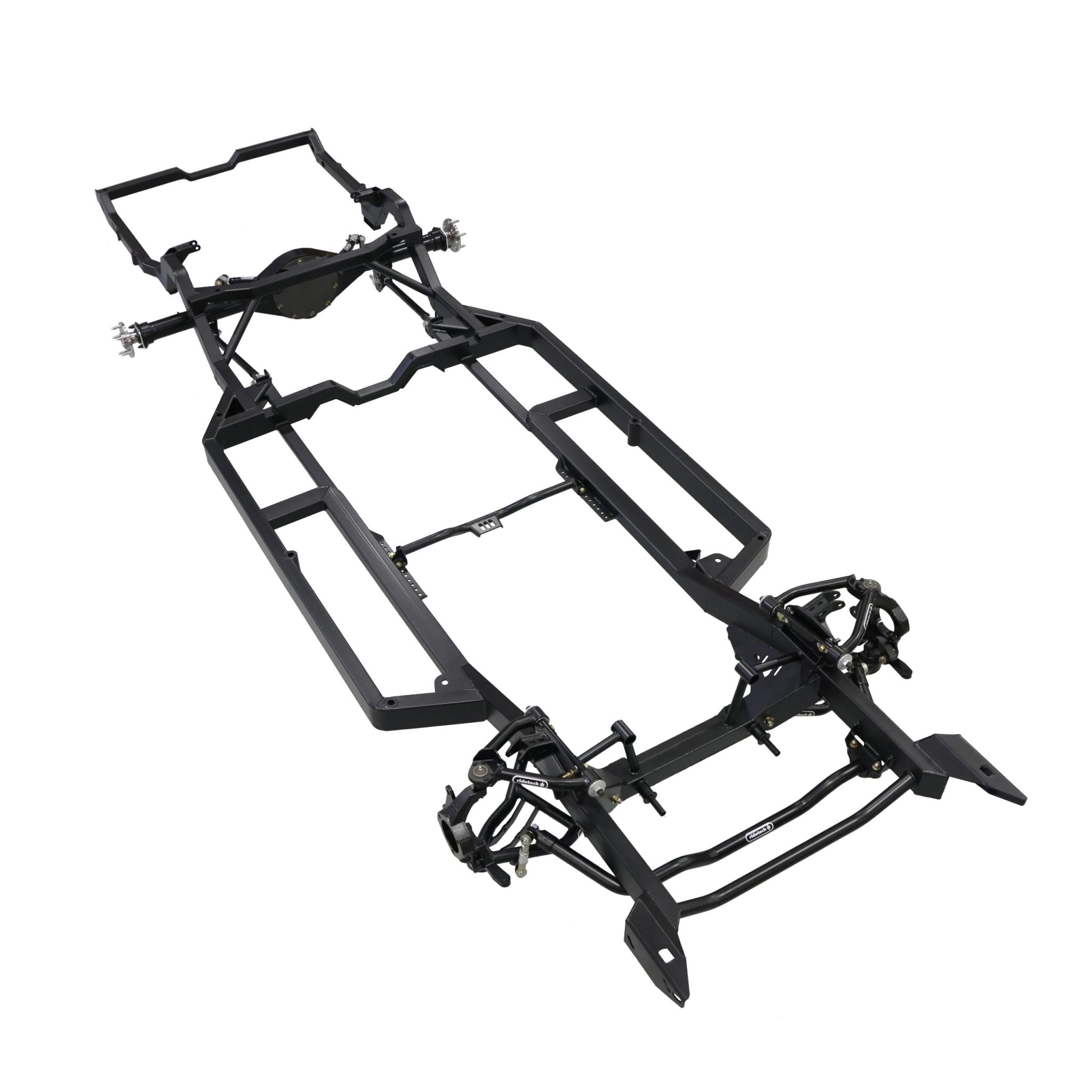 Momentum Chassis for 1968-1972 GM A-Body with hub spindle, narrowed. Includes chassis, upper arms, lower arms, front sway bar, AFX hub spindles, brake brackets, steering, 4-link bars, body bushings, narrow width rear housing and axles