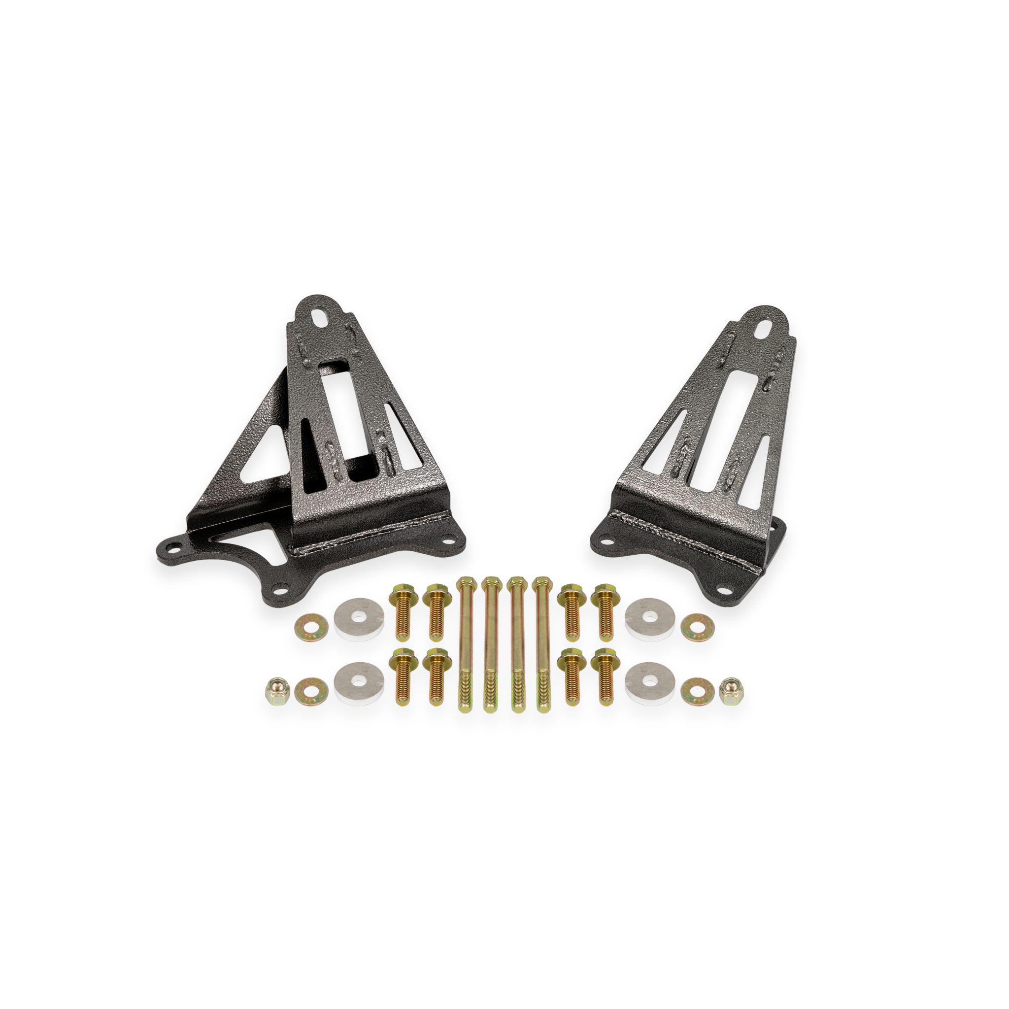 Engine movement (deflection) is wasted horsepower, and that power is yours! BMR Suspension wants you to take it back with its motor mount brackets for 2015 and newer Ford Mustang. BMRs new motor mounts (MM008) are far superior to the bulky, stock upper mounts. BMR manufactures its MM008 polyurethane motor mounts in its Florida facility from CNC-laser cut -inch plate steel with aircraft-grade 7075 billet aluminum spacers. The kit is completed with Grade 8 hardware. BMR Suspension designed the MM008 to be the perfect (100% bolt-in) motor mount bracket for any power level or application (street performance, drag race, and road race) where engine deflection needs to be reduced and additional clearance is required. BMRs new motor mount brackets replace the bulky upper factory motor mount, adding additional clearance for large tube headers, and turbo kits. The mounts also lower the engine height by a 1/4- or -inch, giving you more underhood clearance for aftermarket intake manifolds and superchargers. For handling applications, lowering the engine height also lowers the center of gravity for increased handling. These brackets bolt to the factory rubber motor mount bushings, meaning there is zero change in NVH, When performance is a must, rely on BMR Suspension! BMR Suspensions MM008 motor mount brackets are available in black hammertone or red powdercoat for long-lasting good looks in your cars most harsh environment. Installation time is about 3-4 hours with stock exhaust manifolds (installation time may be longer with aftermarket headers). Proudly made in the U.S.A.