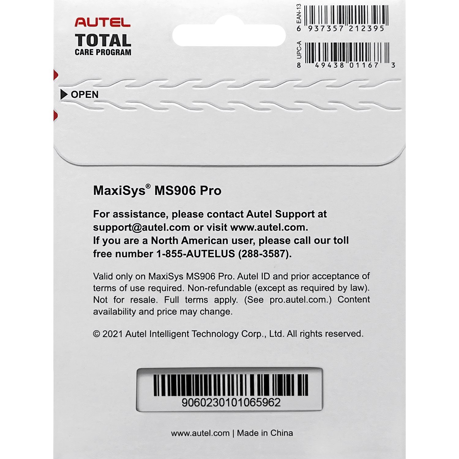 The MS906PRO Total Care Program (TCP) Card extends vehicle coverage and tablet software functionality with one year of software updates. This includes access to AutoAuth and OE-server authentication capability. The TCP also extends the tablet warranty for an additional year.