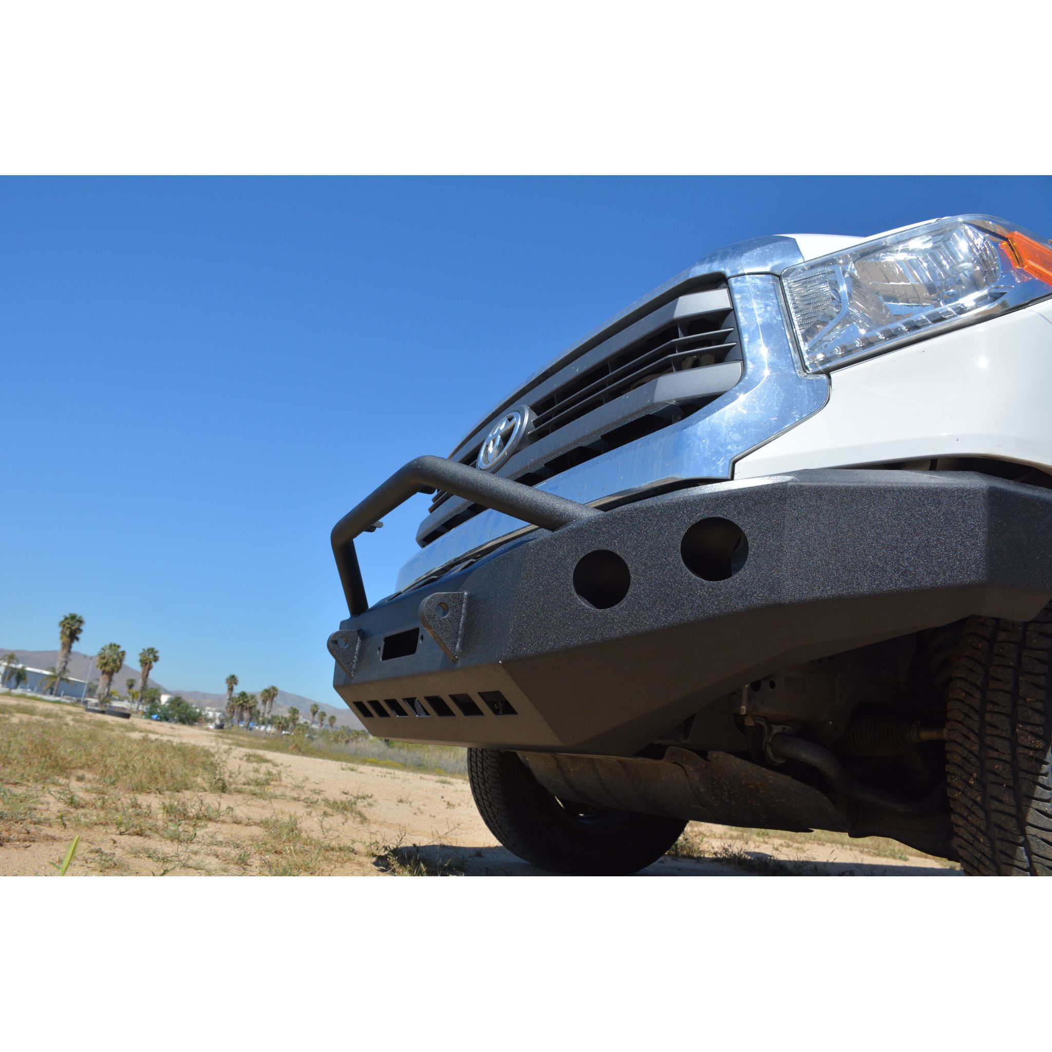 Engineered for the 2022+ Tundra, the MTO Series Winch Front Bumper brings added utility and style to your truck. Its high clearance design gives your truck improved approach angles. Lighting options include cutouts & mounts for two 3-inch light pods, & a central mount behind the aluminum accent panel for a 20-inch dual row light bar. A hidden winch mount along with two ?-inch D-ring mounts provide multiple recovery options.